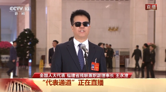 全国人大代表、福建省残联兼职副理事长王永澄接受采访。