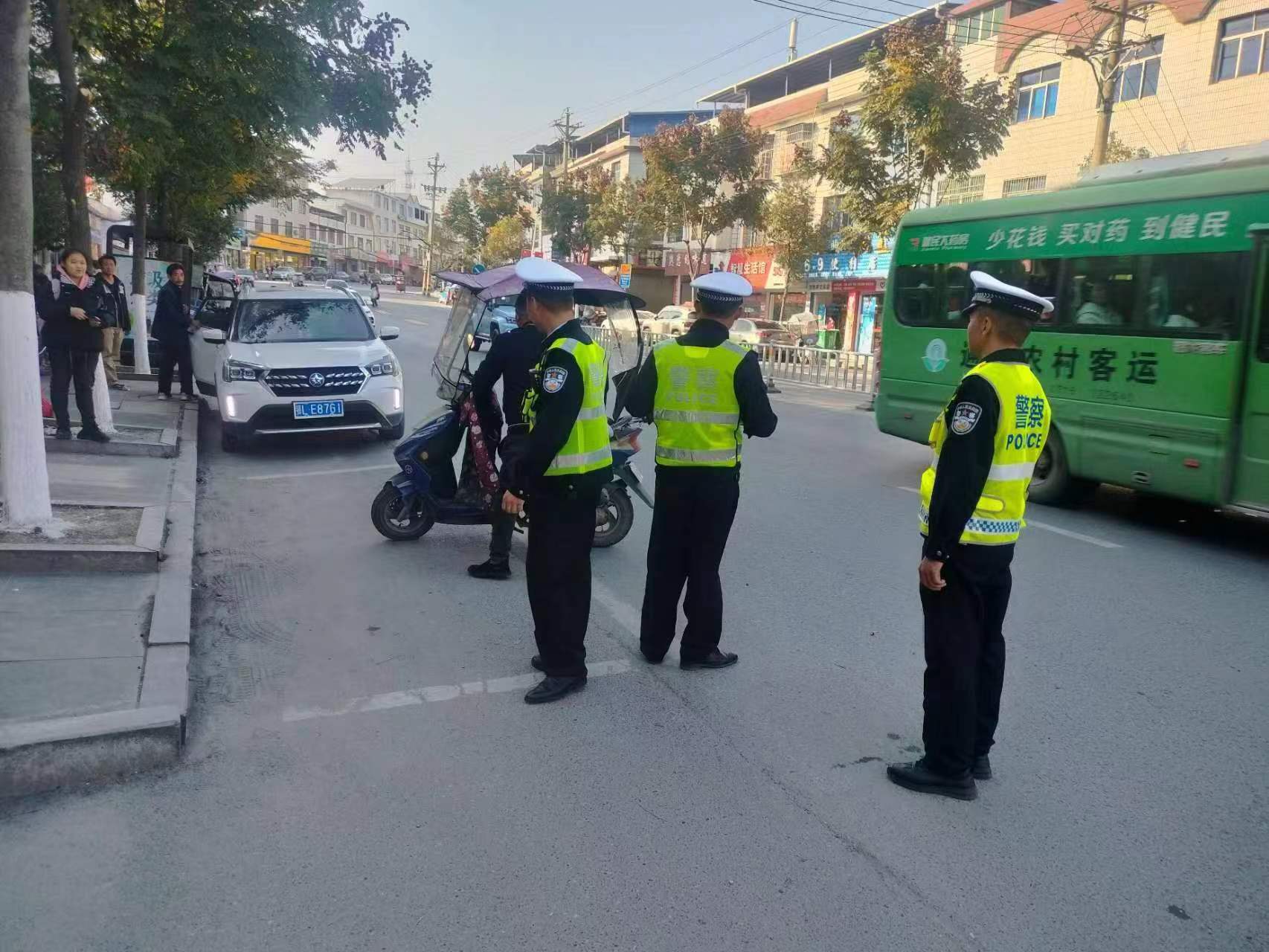 期间,关刀派出所按照上下学等重点时段的治安实际,科学安排警力到辖区各校园门口定时定点开展“护学岗”。一方面,对车流进行引导分流,维护交通秩序,安全有序通行,引导家长、学生不聚集、不扎堆,减轻学校门口及周边道路的交通压力。另一方面,针对机动车乱停乱放、摩托车逆行等安全问题,对驾驶人进行教育劝导,适时开展道路交通安全宣传,为学生上下学提供了强有力的安全保障。