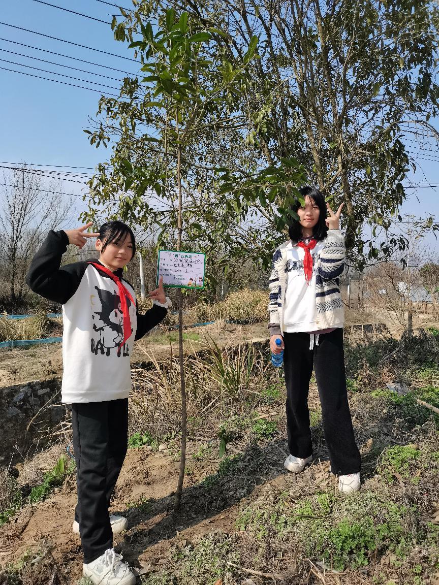 “看,我种的树笔直吧!”在大家的配合下,一株株浸透了同学们心血与汗水的树苗在大柱山村“安家落户”,在和煦的春风中展现出蓬勃生机。来不及休息,同学们迫不及待地为自己种下的小树系上丝带、挂上树牌,与小树合影。