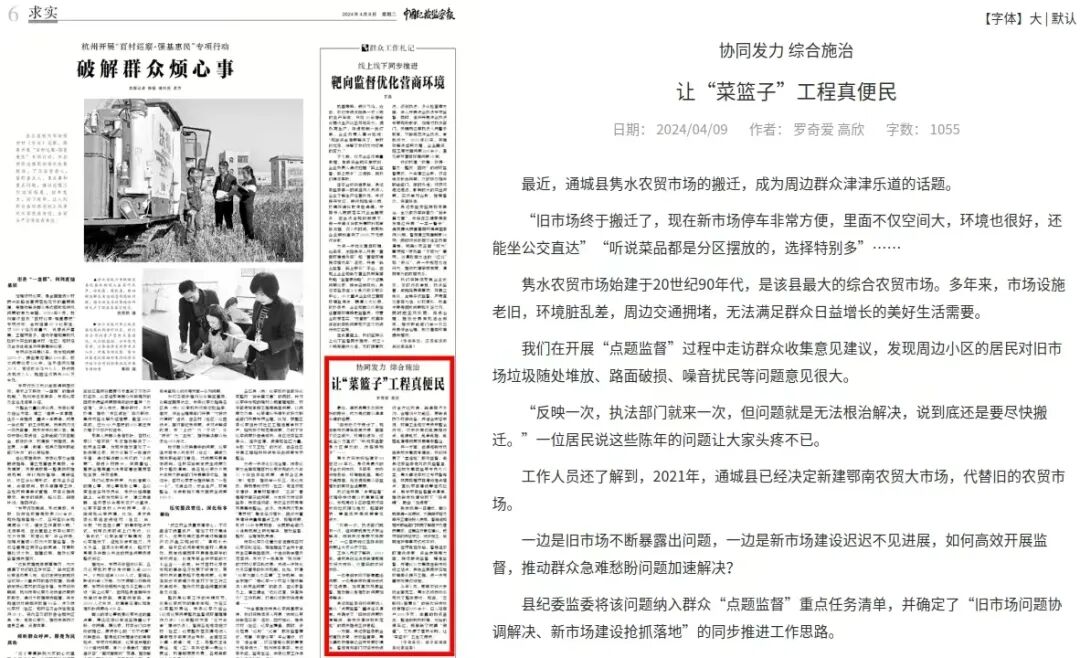 县纪委监委将该问题纳入群众“点题监督”重点任务清单,并确定了“旧市场问题协调解决、新市场建设抢抓落地”的同步推进工作思路。