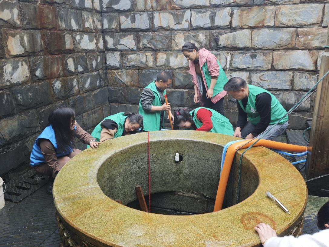 志愿队队员们抽干井水,搭好楼梯,下到井里清理淤泥,井沿的苔藓与墙壁的污垢都仔仔细细擦干净。“辛苦了哟”“这里的水都是好水啊”,前来准备打水的村民,看到护泉志愿队的辛勤劳动,都纷纷竖起大拇指。志愿队徐大爷表示:“石泉古井是我们村的一大特色,自古就供应着石泉村民的生活用水,大家都很珍惜和依赖它,我们志愿队的责任就是要维护好这口井。”