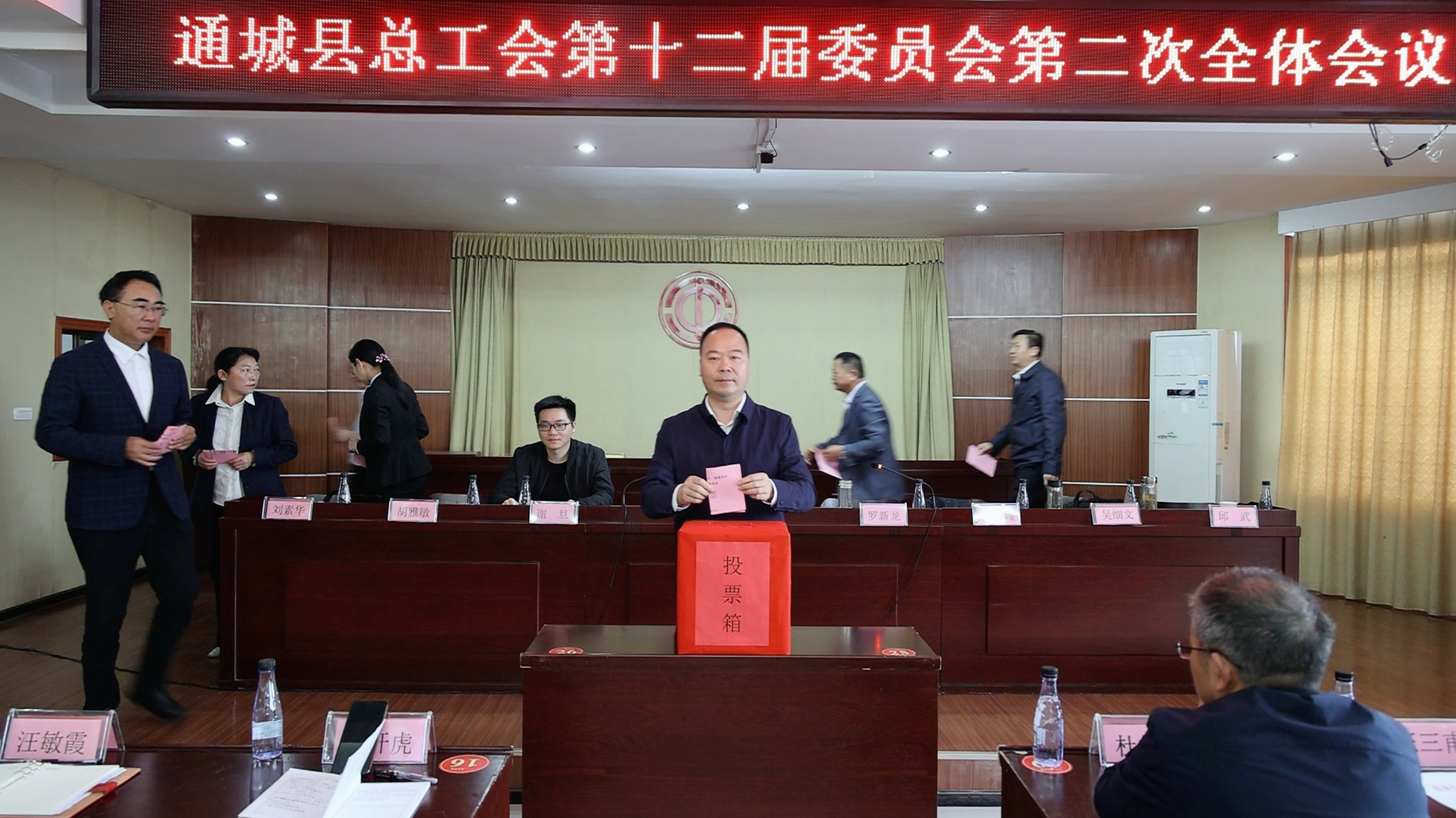 会议分成两个阶段进行,第一阶段举行通城县总工会第十二届委员会第二次全体会议。县委组织部宣布了县委任命决定,通过无计名投票方式,冯海燕当选通城县总工会第十二届委员会主席。