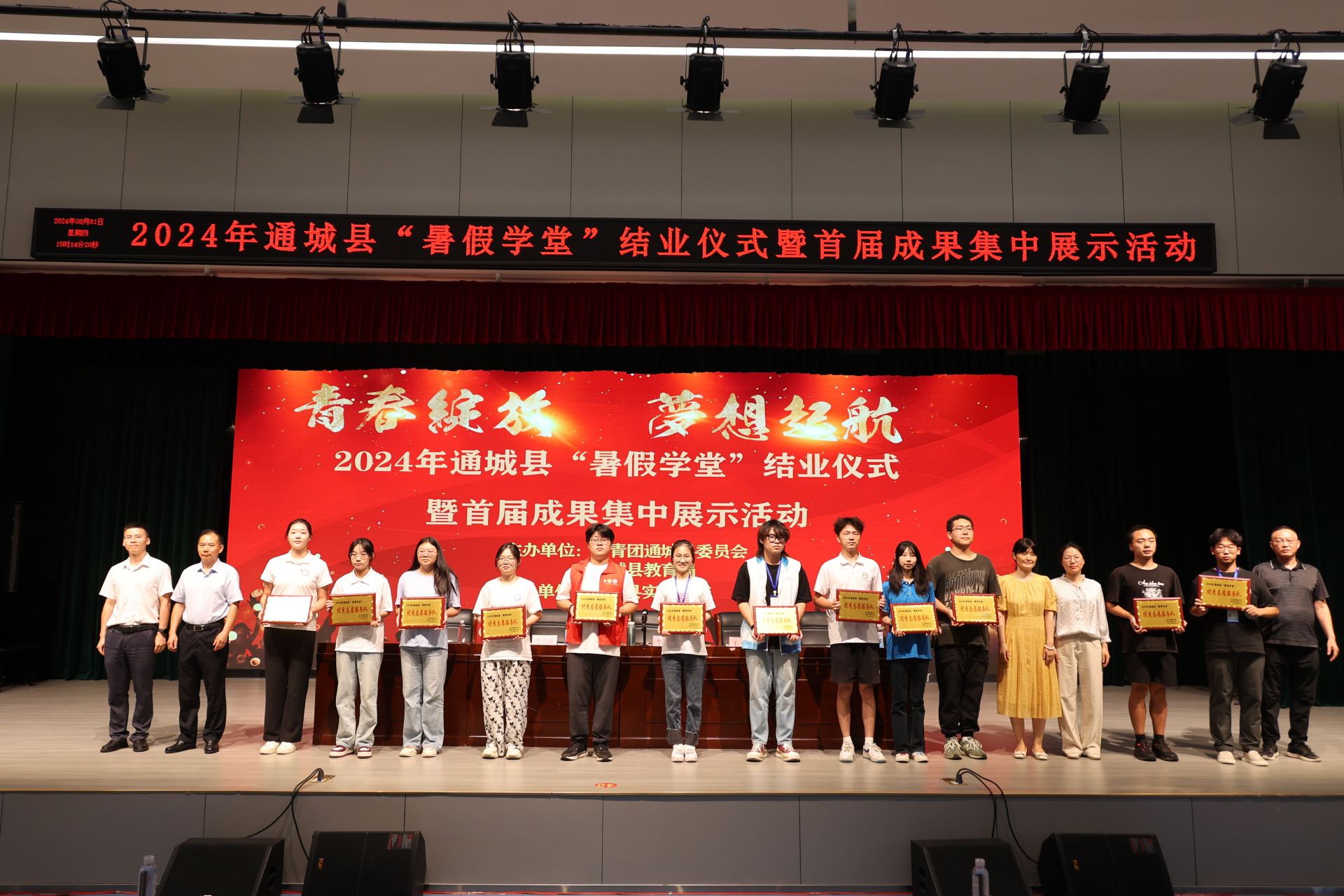 结业仪式上,为江汉大学设计学院社会实践基地、黄冈师范学院社会实践基地进行了授牌;通城县实验学校、通城县隽水小学、通城县第二小学被评为2024年通城县“暑假学堂”最佳阵地;华中科技大学支教一队、支教二队,湖南大学支教队,中南财经政法大学支教队,湖北大学支教队,江汉大学支教队,黄冈师范学院支教队等12支支教队被评为2024年通城县“暑假学堂”优秀志愿服务队。