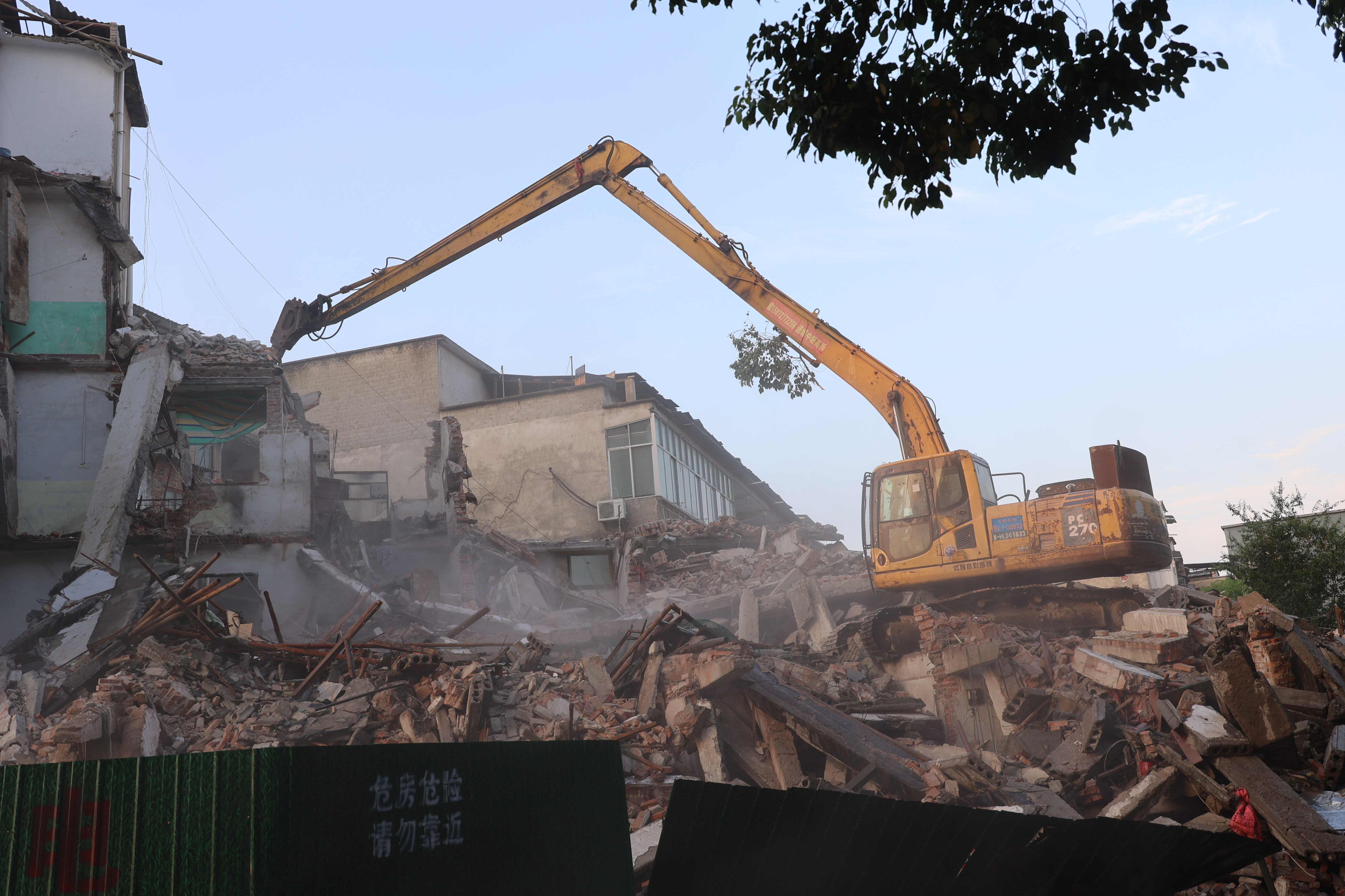 8月14日,通城县依法对位于隽水镇古龙路6号的老教委宿舍楼予以拆除,随着挖掘机“轰隆”作响,这栋D级危房应声倒下。随后,工作人员对拆除现场进行了清理,并组织人员做好建筑垃圾清运工作,确保拆除现场环境卫生整洁。县政府副县长丁元华现场指导拆除工作。