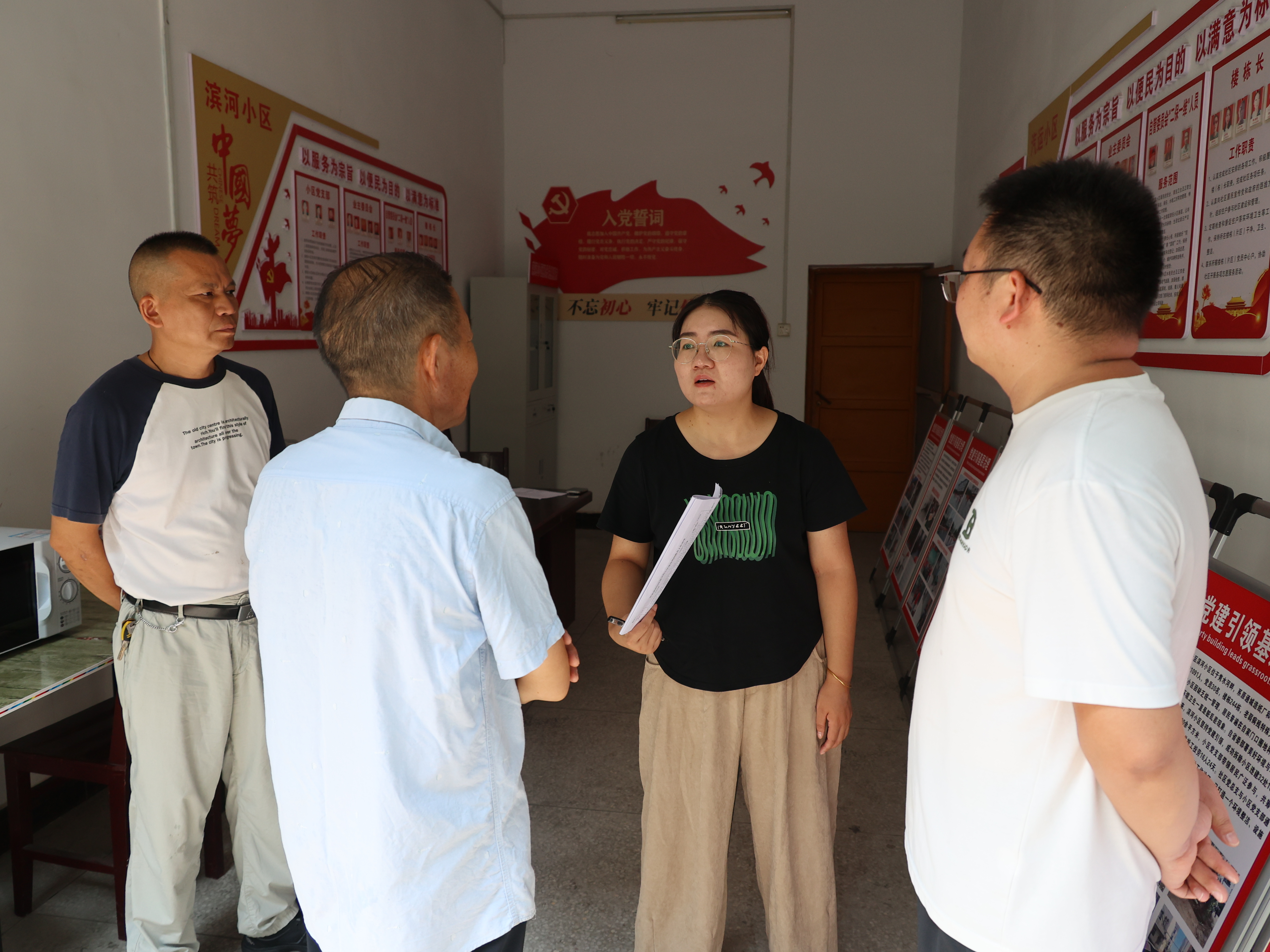 隽水镇党委组织、统战委员 葛神燕:去年滨河小区我列了一个整改清单,不知道你整改得怎么样?今年的示范小区,我要去现场看一下打造的怎么样了,我到滨河小区等你。