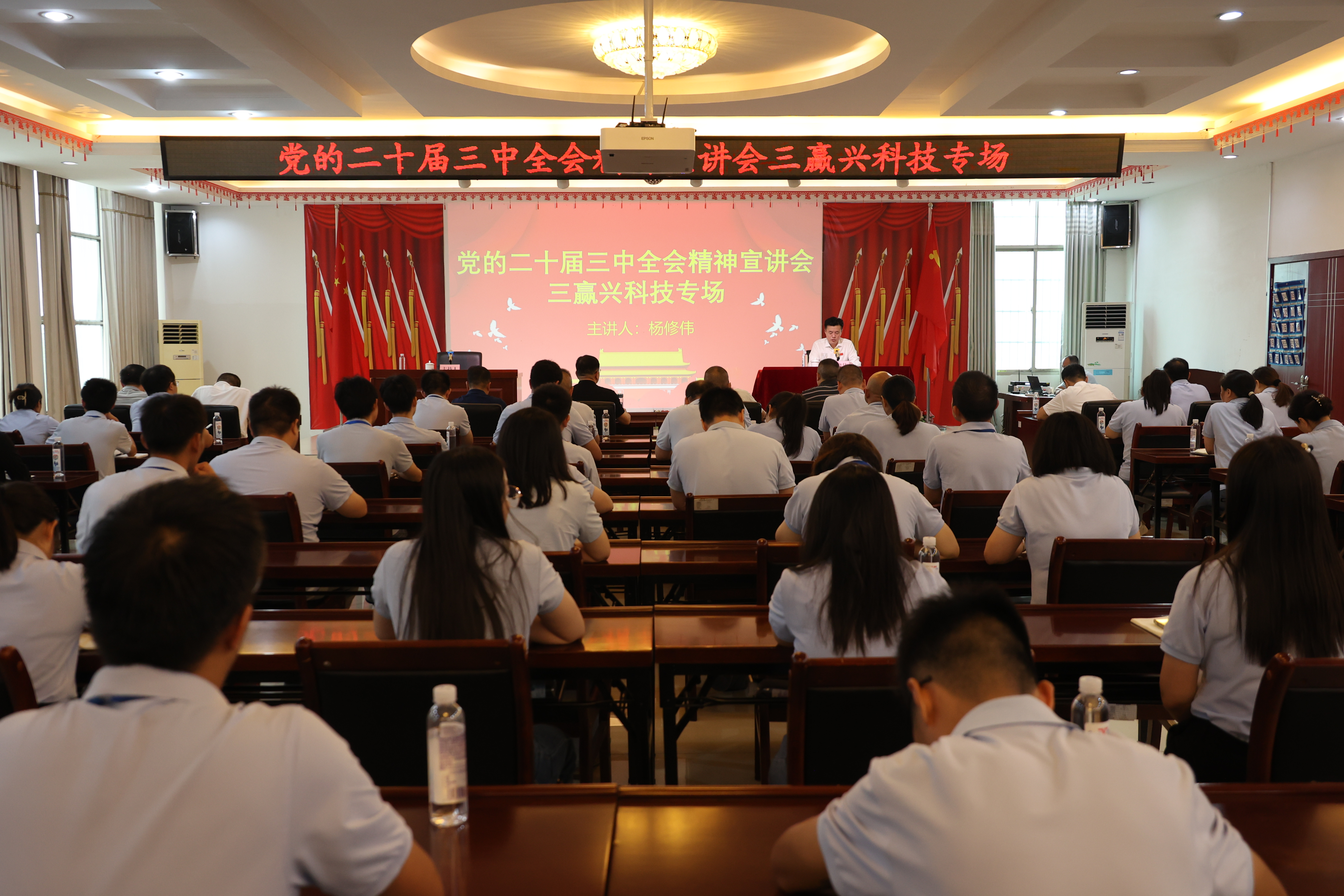 【全媒体记者 周志鹏】9月20日,通城县委副书记、县长杨修伟到湖北三赢兴光电科技股份有限公司,向基层党员、企业员工宣讲党的二十届三中全会精神。通城经济开发区党工委书记、管委会主任续红林参加。