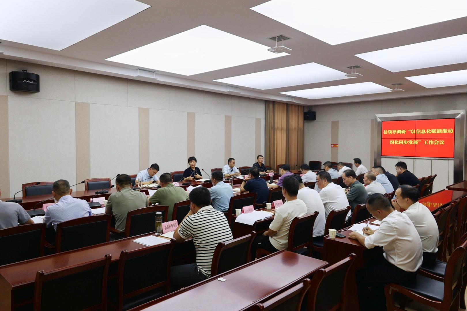 刘中英强调,数据作为发展的关键要素,信息化能够更好地促进资源要素聚集和整合,为“四化同步”发展提供强大聚合力。全县上下要统一思想,进一步改进工作方法,以信息化赋能推进四化同步发展。要全力、强力推进信息化建设工作,进一步解放思想,打开思想边界,多方整合资源,实现资源共享、信息互联互通。要有前瞻意识,牢固树立系统思维,坚持问题导向、目标导向和结果导向,持续推进和完善城市数字公共基础设施体系,夯实四化同步发展基础支撑。要切实担负起信息化赋能四化同步的历史使命,进一步提升产业数字化水平,聚焦高效、便民、惠民,着力促进信息化与城镇化良性互动,推动新型工业化、信息化、城镇化、农业现代化同步发展,形成一系列可复制、可推广的机制和模式,确保“以信息化赋能推动四化同步发展”工作推进到位、落实到位。