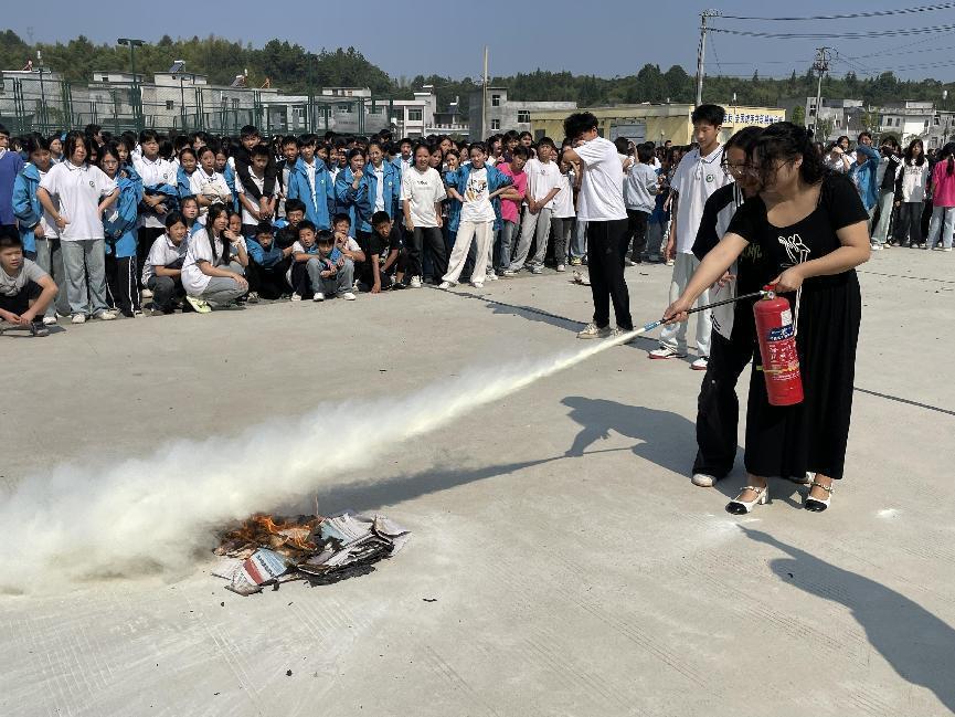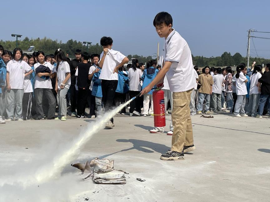 “大家要牢记灭火器使用口诀一提、二拔、三握、四压,冷静拿稳,对准火源。”演练结束后,学校相关负责人结合校园实际情况从警示、防火、灭火、逃生四个方面,给师生们详细讲解火灾预防、初期火灾扑救以及火场逃生自救等消防安全知识,并现场指导学生动手实践操作灭火器。