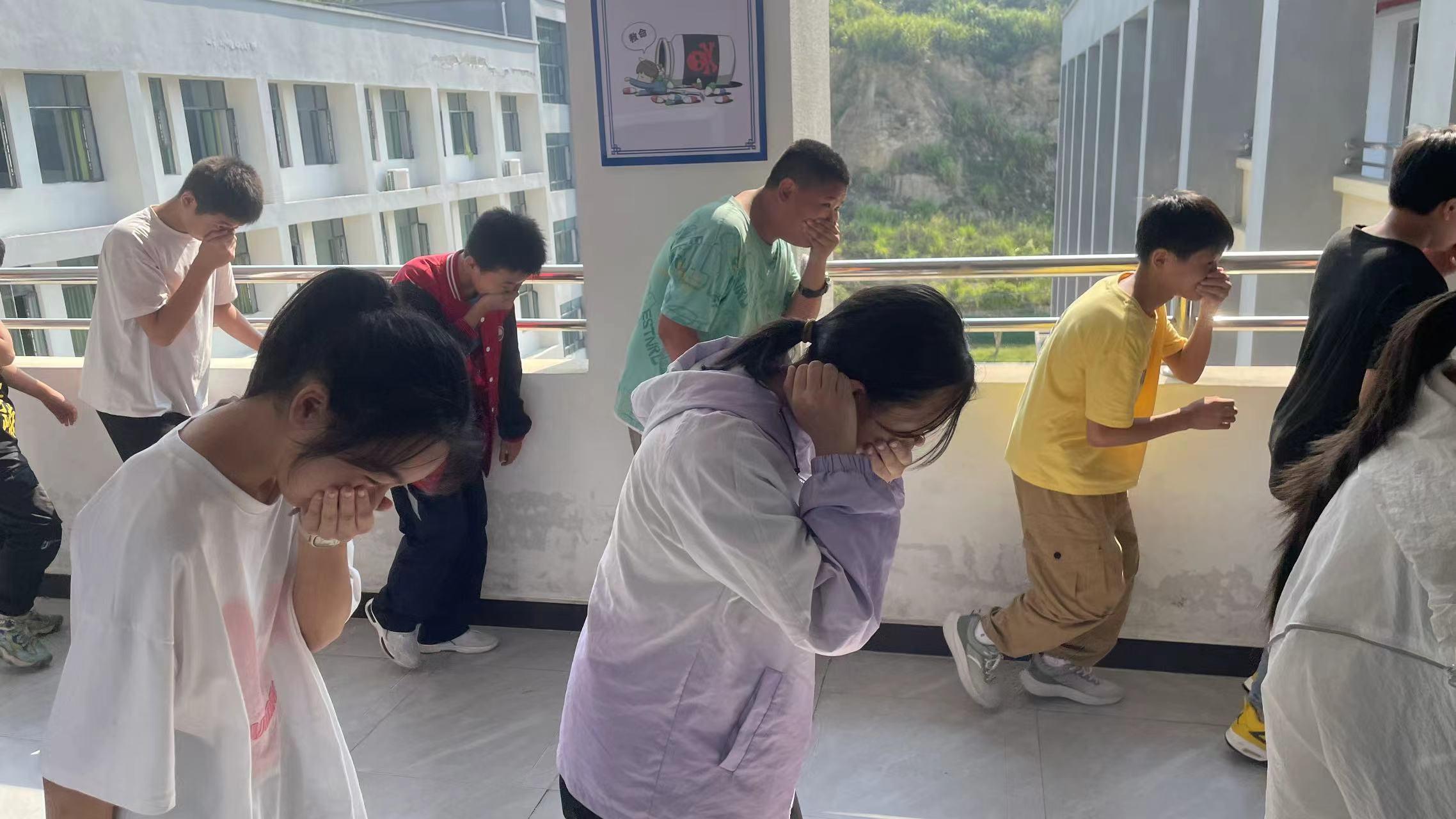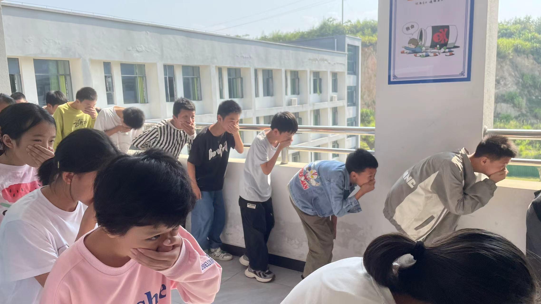 上午9点45分,随着急促的警报声响起,全体学生捂住口鼻、低头弯腰,不惊慌、听指挥、动作敏捷,紧张有序地撤离到安全地带。