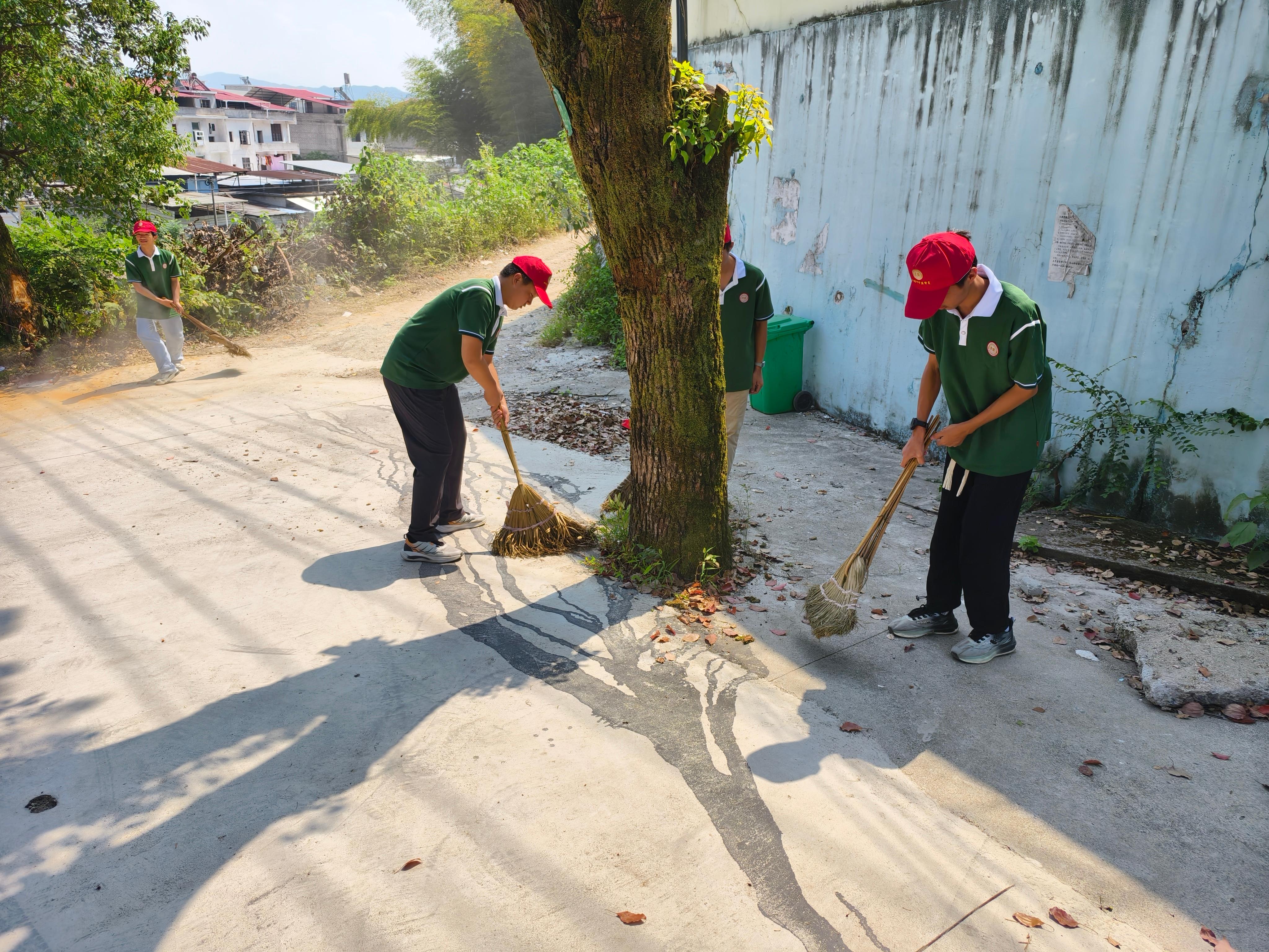 活动结束后,同学们发扬“奉献、友爱、互助、进步”的精神,纷纷拿起工具,在校门口两边打扫卫生。经过一番努力,校园环境变得更加整洁美丽,同学们也收获了劳动的喜悦。