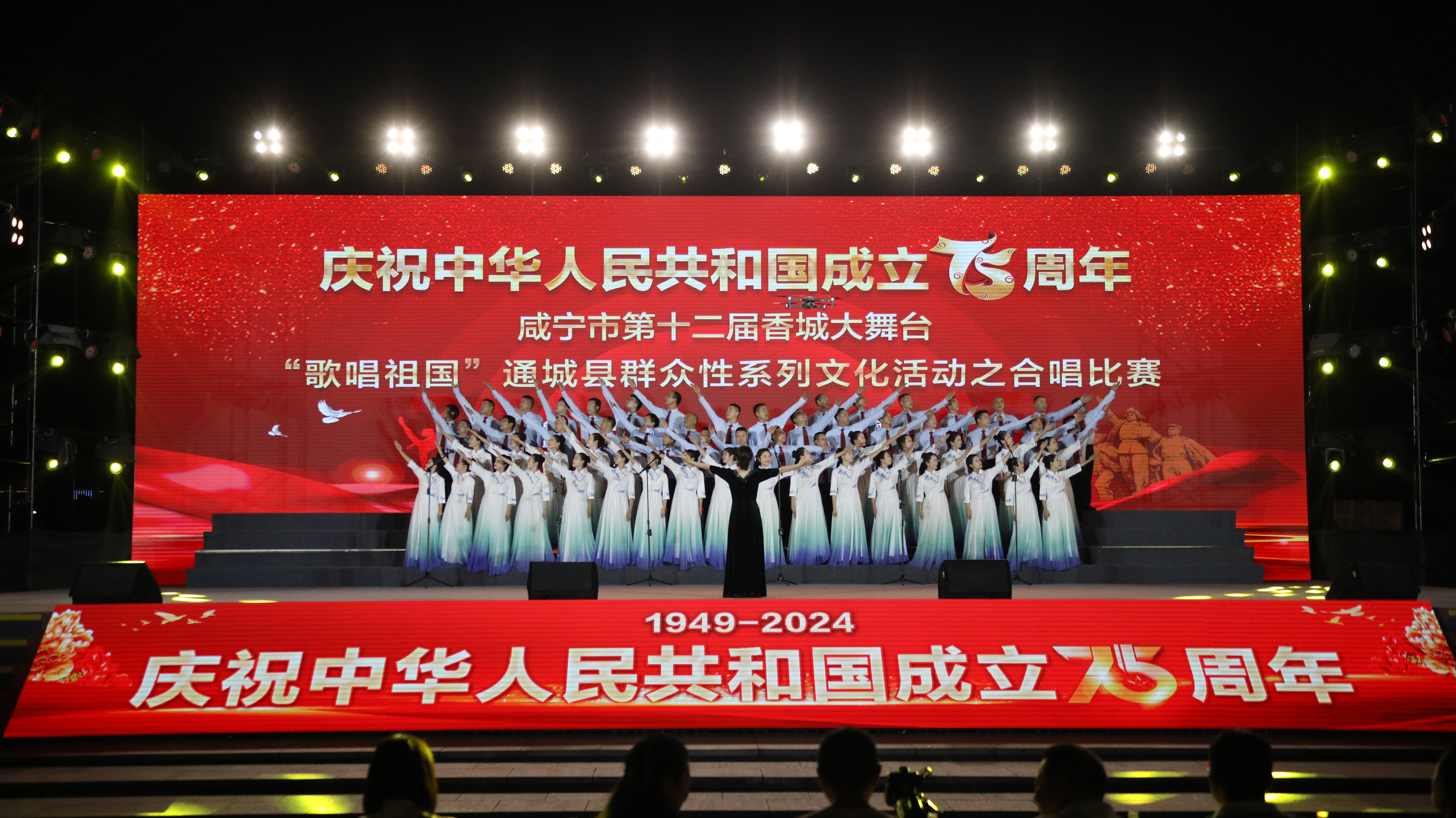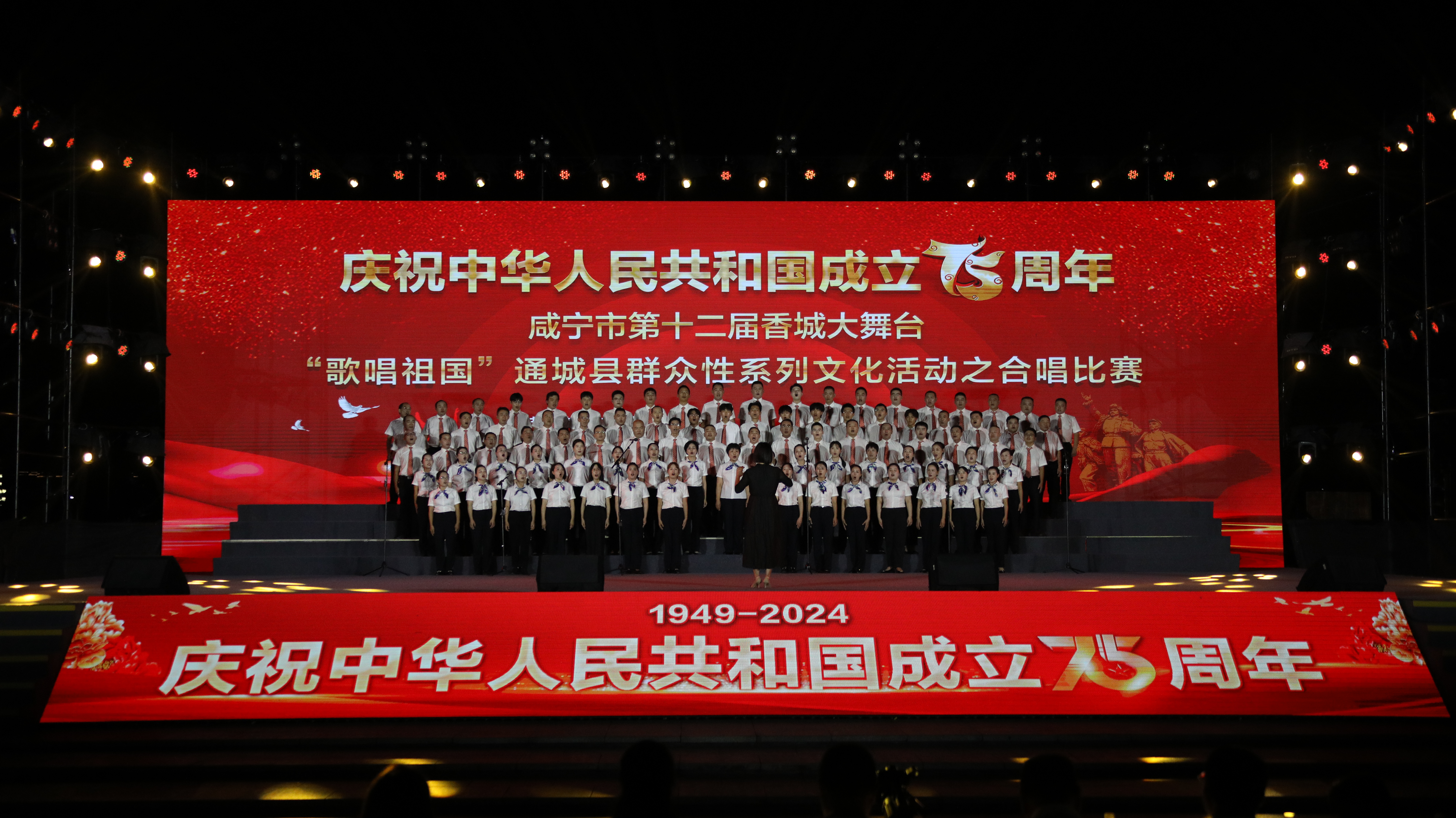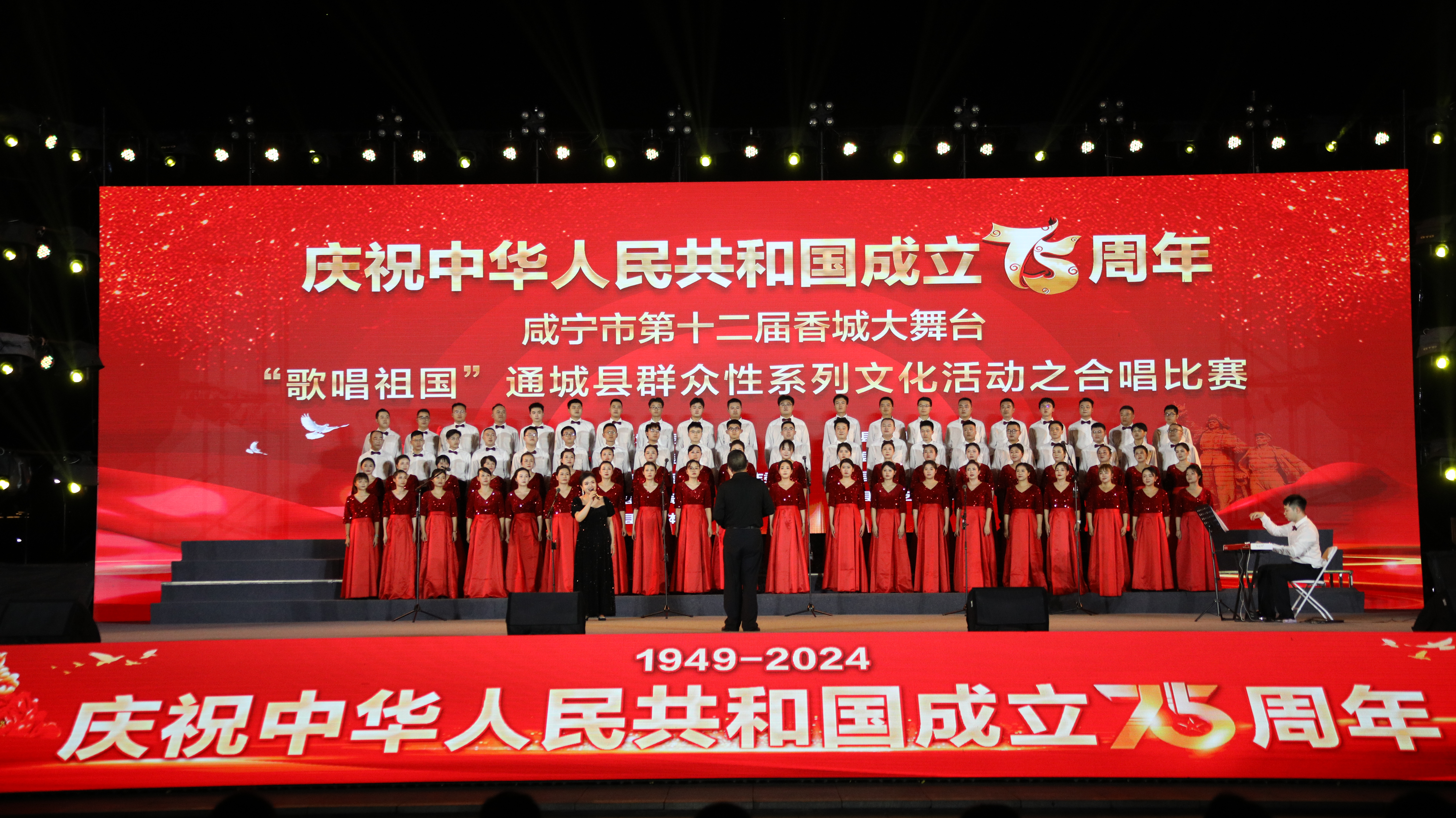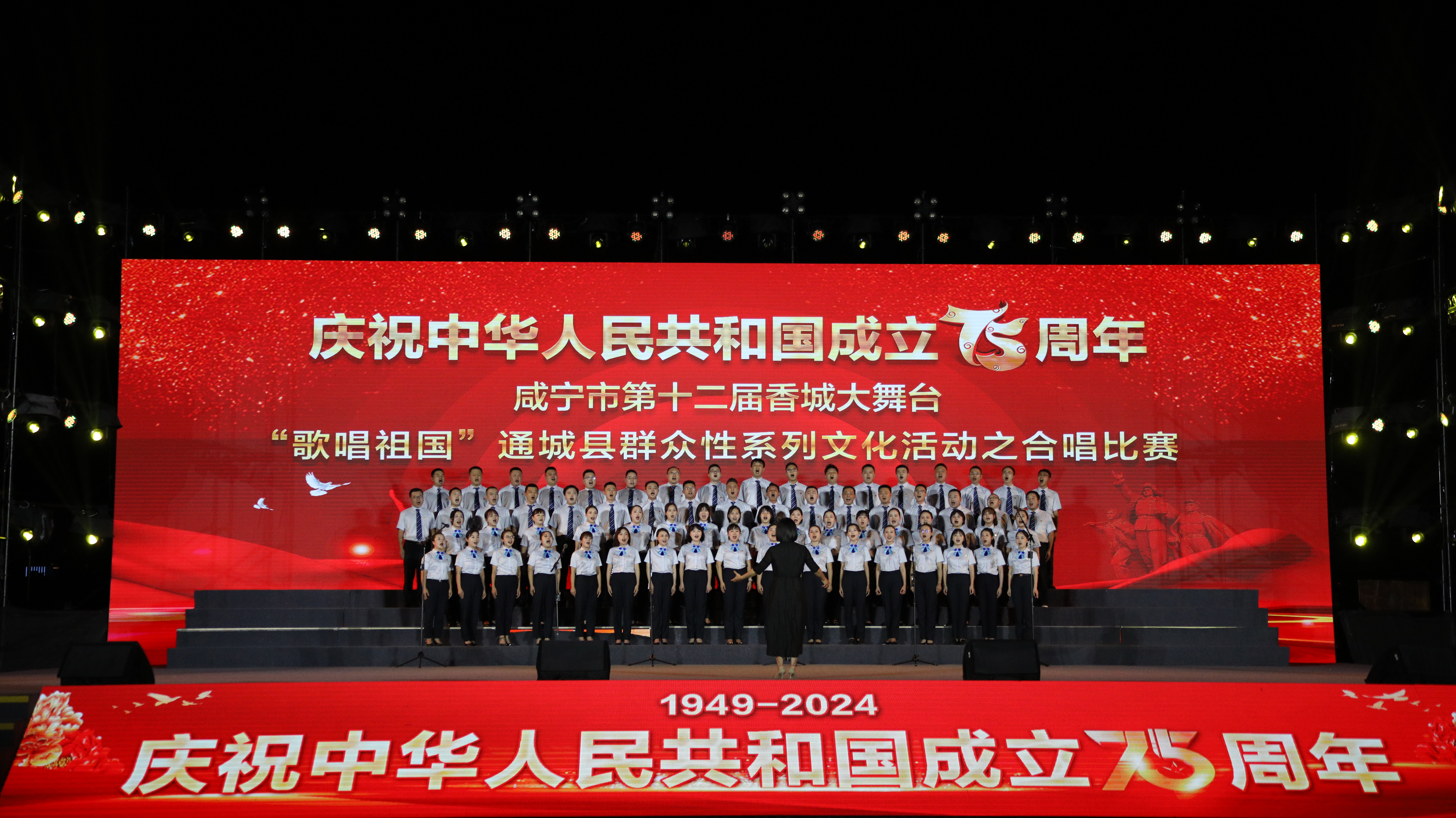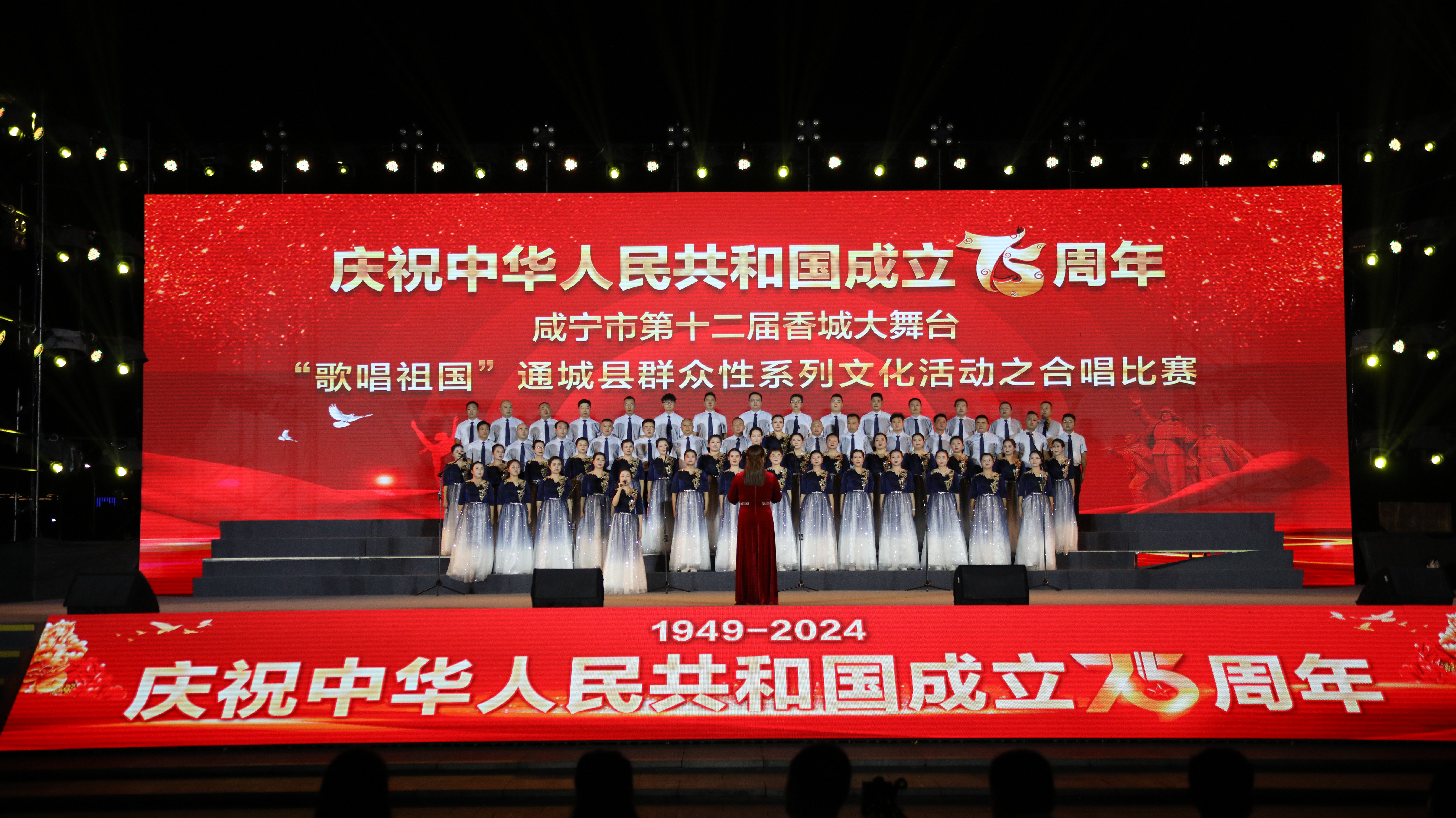 【全媒体记者 周志鹏 何蓉 胡海涛】9月29日晚,庆祝中华人民共和国成立75周年咸宁市第十二届香城大舞台“歌唱祖国”通城县群众性系列文化活动之合唱比赛决赛在银山广场激情唱响,来自全县各条战线的12支合唱队伍以歌传情,共庆祖国华诞,表达对党、对祖国的无限热爱与深情祝福。