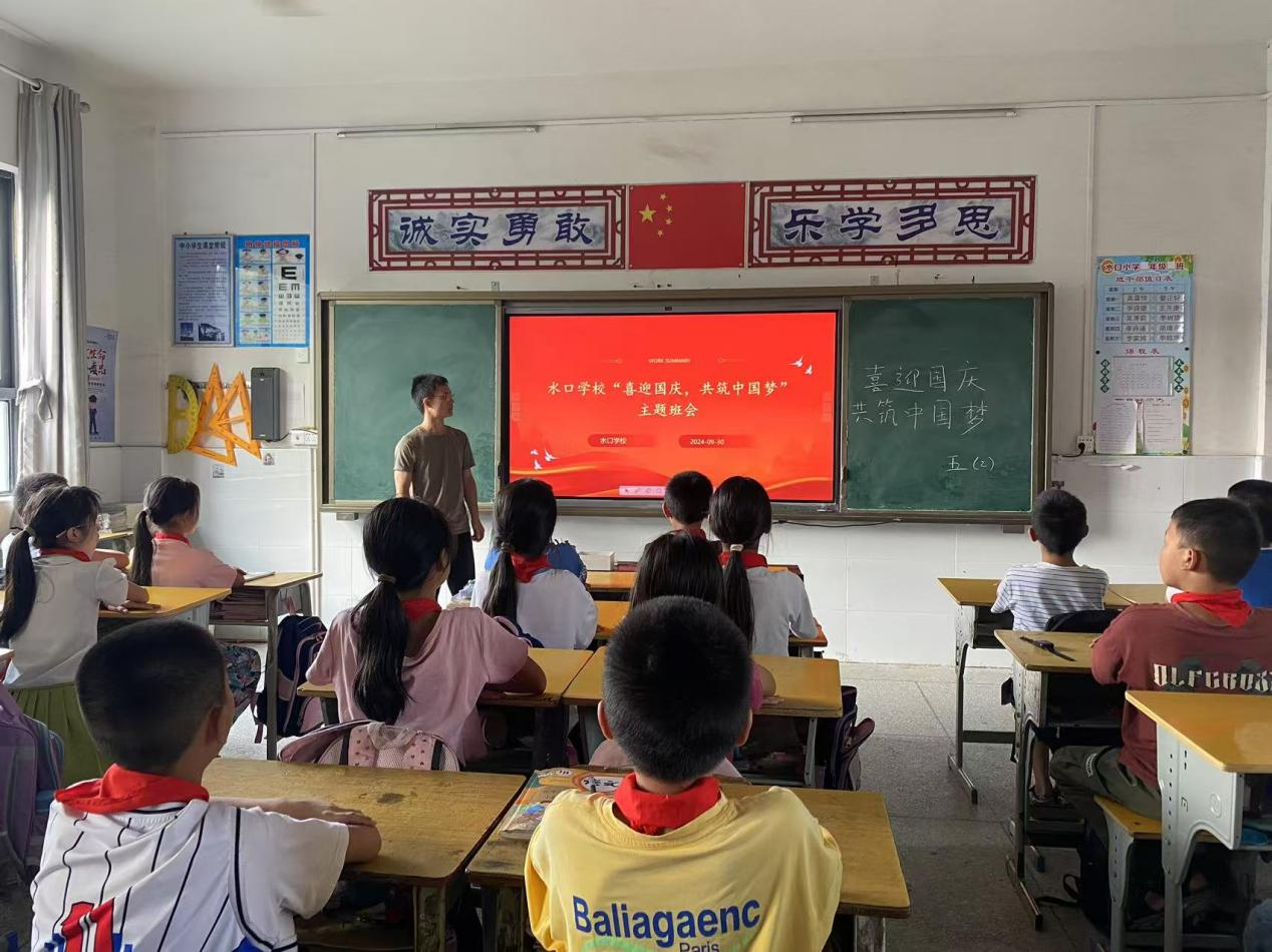 水口学校 通过举办“喜迎国庆,共筑中国梦”主题班会 ,通过图片、视频等多种形式,生动展现了新中国成立以来取得的辉煌成就,以及革命先烈们的英勇事迹,同学们 更加坚定了为实现国家富强、民族振兴而努力奋斗的决心。