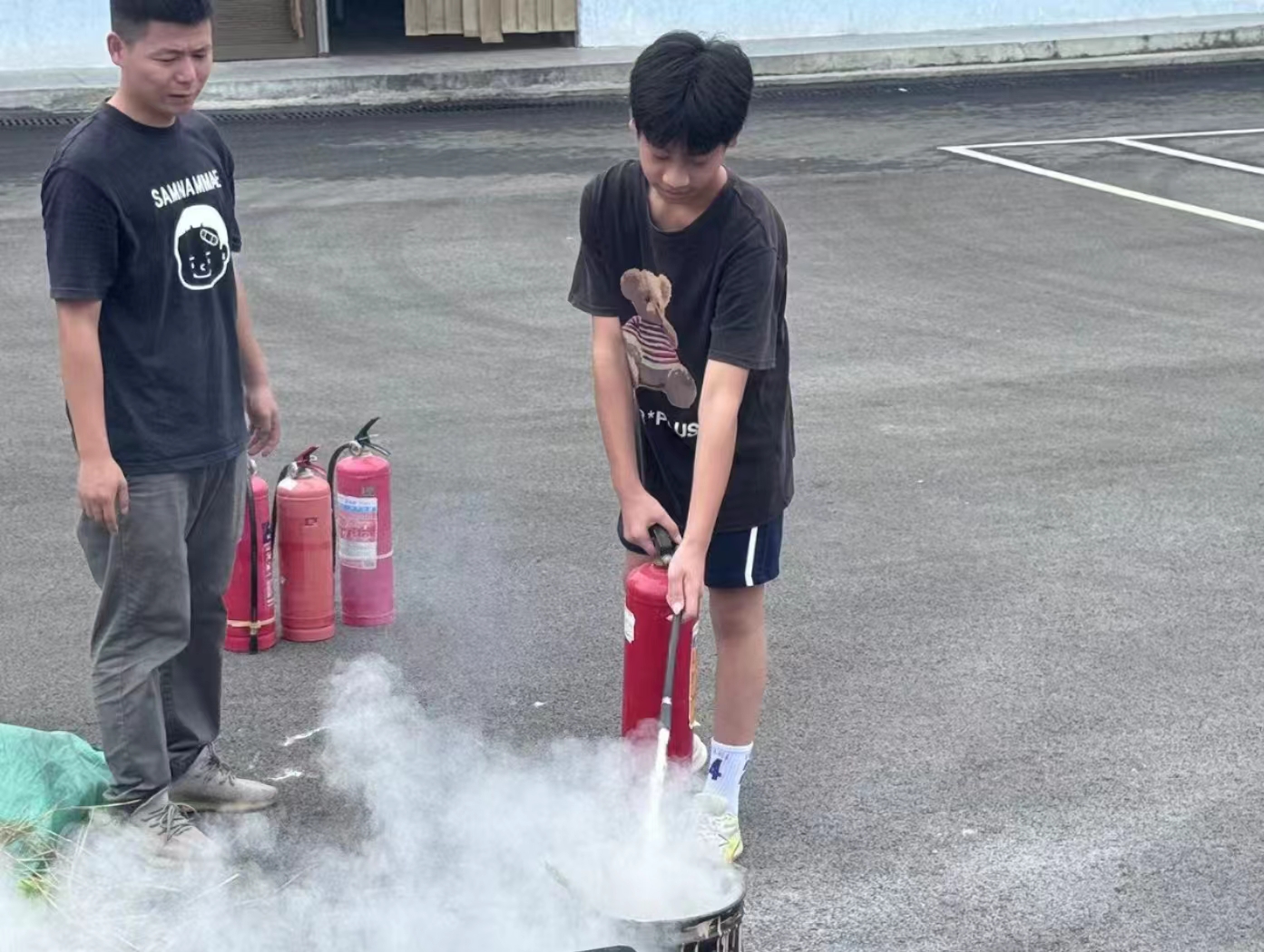 在演练过程中,师生们保持冷静,用湿毛巾捂住口鼻,弯腰低姿前进,以防吸入有毒烟雾。各楼层负责人和班主任老师需确保每位学生都已安全撤离,并及时向总指挥报告情况。演练结束后,组织部分师生代表在专业人员的指导下亲身体验使用灭火器扑灭初期火灾的过程。通过实操体验,让师生们掌握灭火器的正确使用方法,提高应对初期火灾的能力。