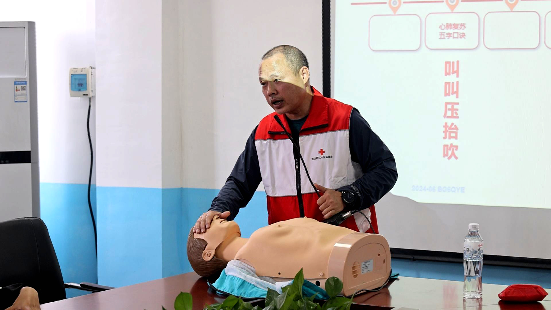 此次培训采取理论讲解、示范实操相结合的方式进行,培训内容包括心肺复苏、AED操作使用等医疗应急救护技能。