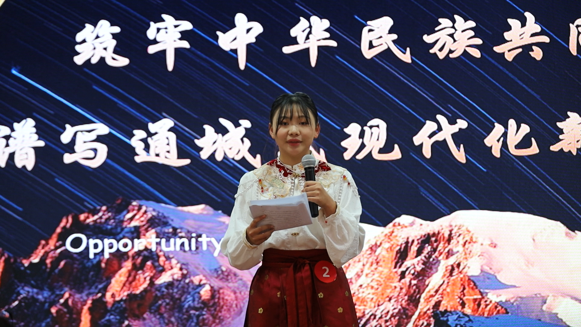 比赛现场,选手们紧紧围绕“铸牢中华民族共同体意识”主题,或慷慨激昂、或娓娓道来。有的选手从历史文化角度,讲述中华民族多元一体的形成过程;有的选手从现实生活出发,分享身边各民族间手足相亲、守望相助的感人故事;有的选手从个人成长经历出发,发出“青年一代要勇于为新时代发声”的号召,回应“请党放心、强国有我”的时代召唤,表达了将个人梦想融入“中华民族伟大复兴的中国梦”的坚定决心。选手们的演讲深深感染着现场观众,进一步激发了大家对铸牢中华民族共同体意识的深刻认识和情感共鸣。