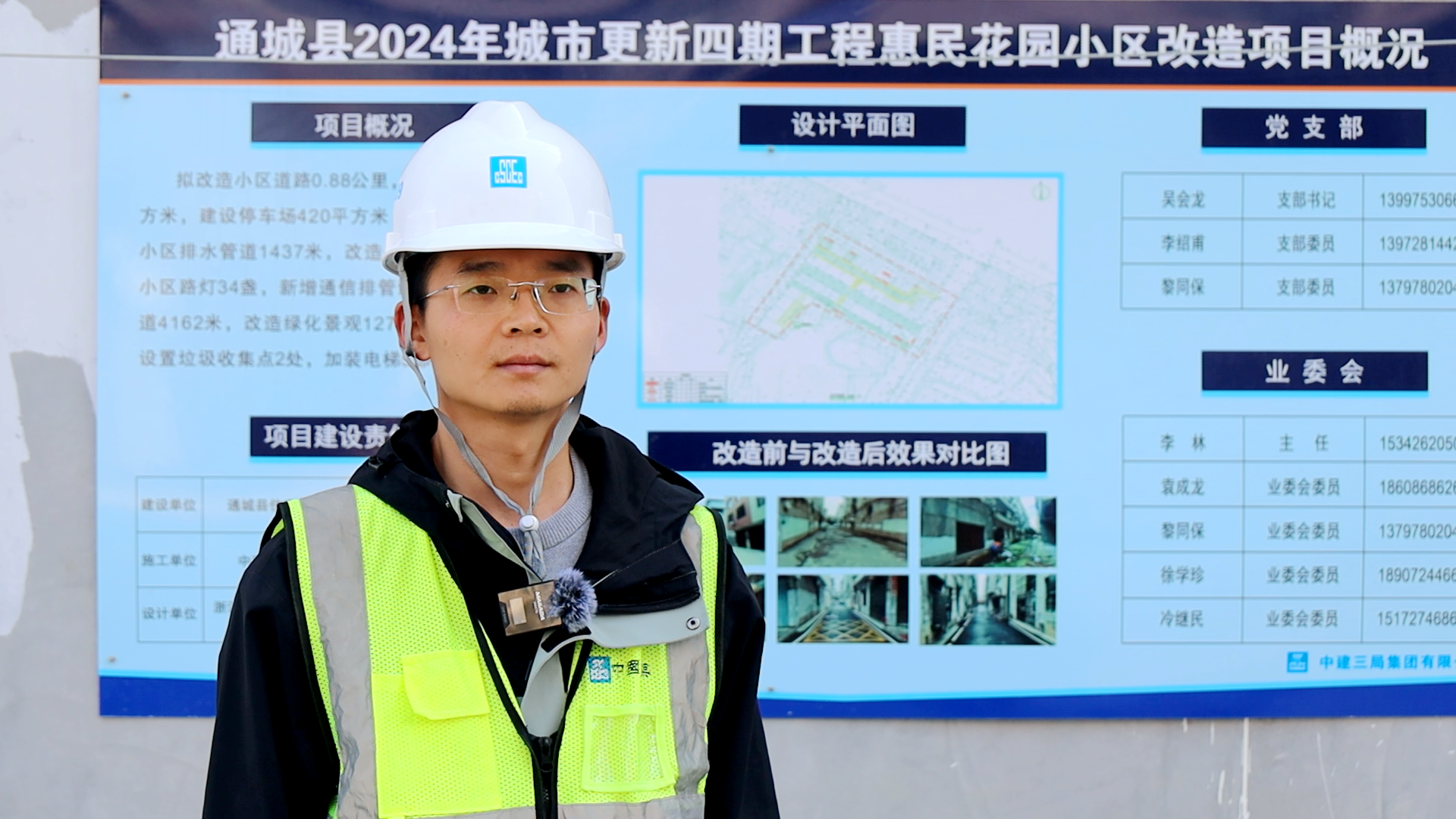 中建三局通城县老旧小区改造项目生产经理 张干:城市更新四期项目,包含18个小区给水排水、道路工程、通信、照明以及电梯工程。目前,项目整体进度已完成80%,春节后将进行项目的收尾工作。
