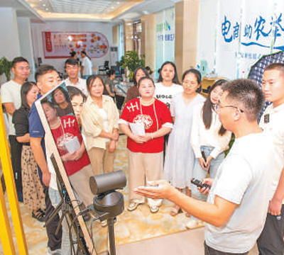 江苏宿迁市宿豫区下相街道党工委工作人员在为新就业群体开展电商直播培训。