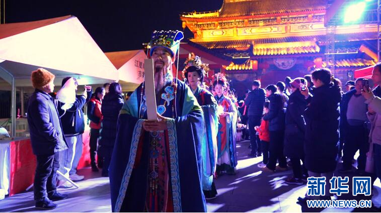值得一提的是,除了有京剧演出,现场还有别出心裁的文化活动为观众带来别样体验。在演出前,戏楼外的广场上举办了一场美轮美奂的夜晚汉服巡演。身着华丽汉服的表演者们,手持灯笼,在古色古香的建筑背景下缓缓前行,仿佛穿越时空而来,向人们展示了汉服文化的典雅与庄重,吸引了众多观众驻足拍照留念。