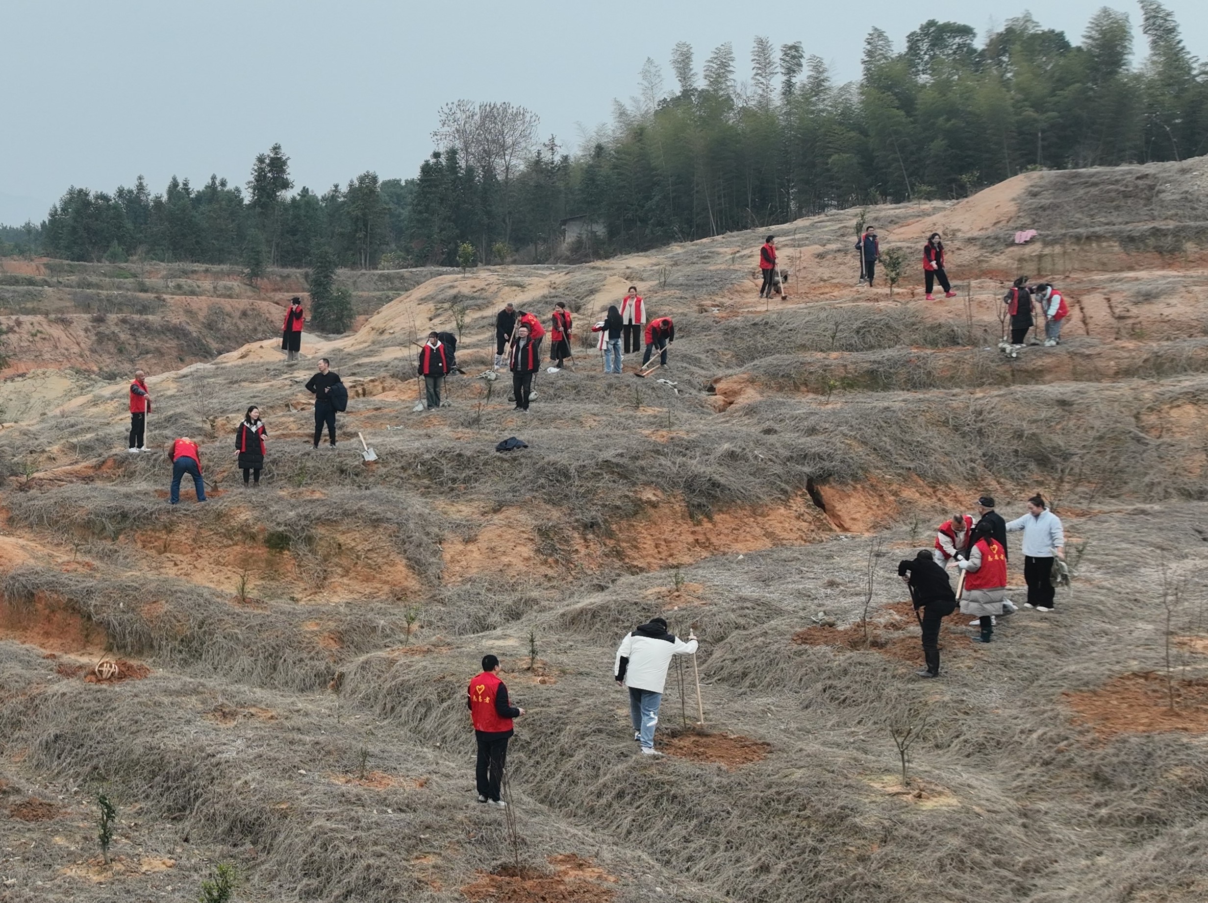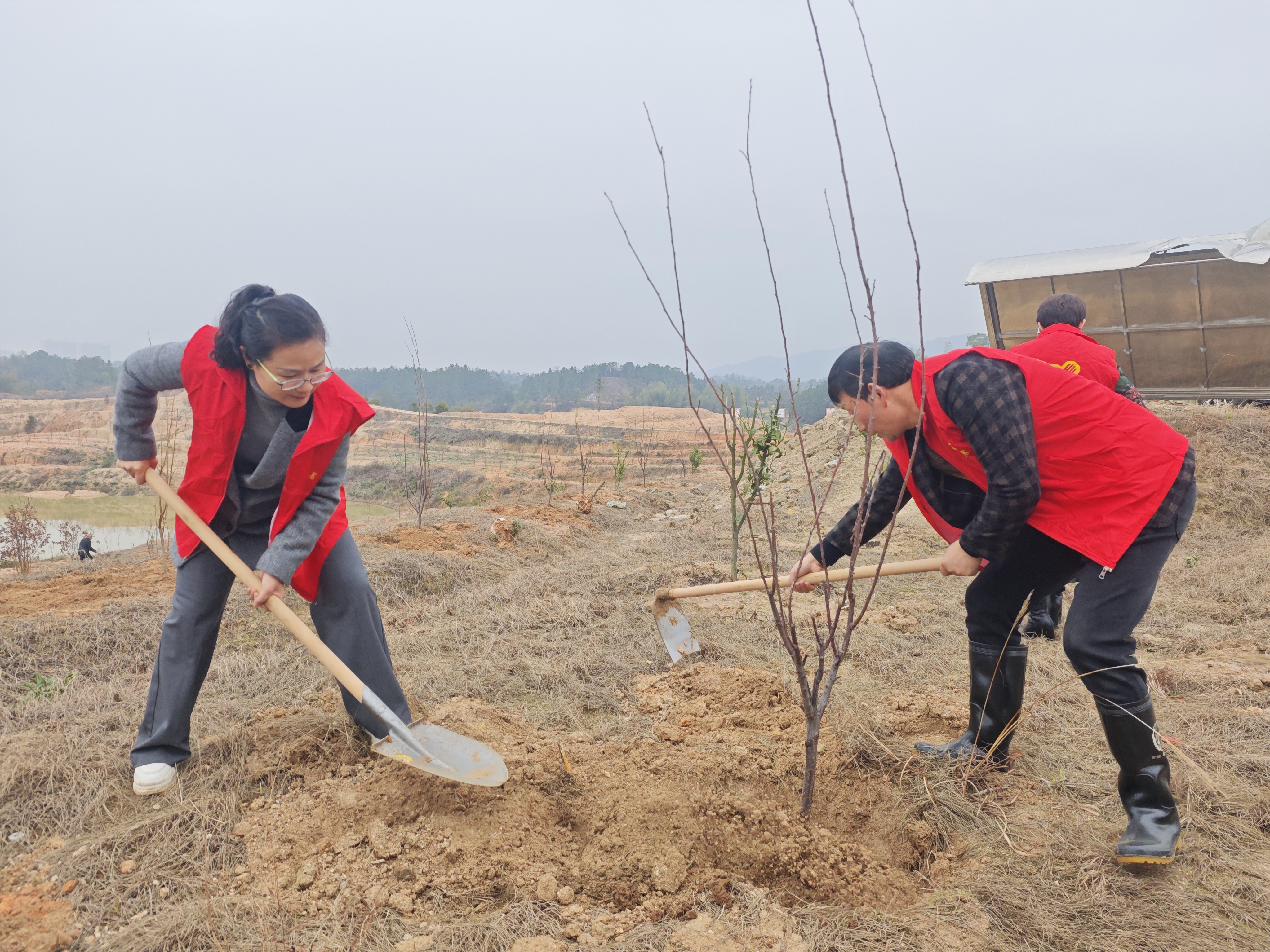 【通讯员 沈威 阮班阳 丁璇璇】春山可望,新绿初绽。3月11日上午,通城县五里镇组织50余名党员干部志愿者在五里村开展“学雷锋,做志愿,服务支点建设建新功”主题植树活动。经过两个多小时的辛勤劳动,共栽种梨树、桃树200余株,为五里村生态振兴添新绿,为美丽乡村建设增活力。