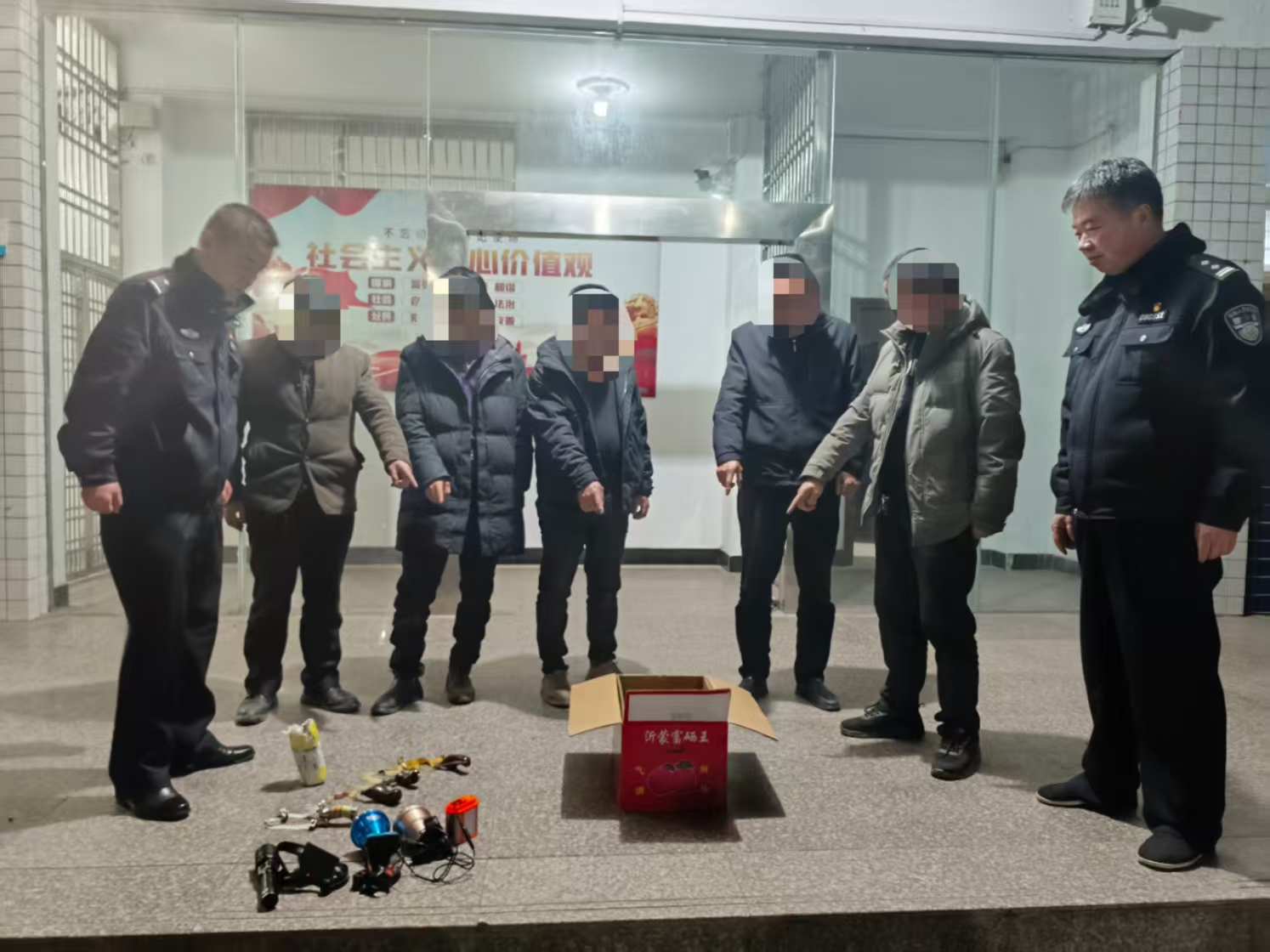 3月10日22时许,值班民辅警在大坪乡易畈村进行巡逻时,突然听到不远处传来异样响动,他们循声而去,发现5名男子正手持手电、弹弓等工具,准备猎捕栖息在附近的野生动物,民警立即采取措施,将5人抓获并收缴其捕猎工具。经清点,他们非法捕猎野生斑鸠3只,麻雀1只,黑鸟2只,刺猬1只。