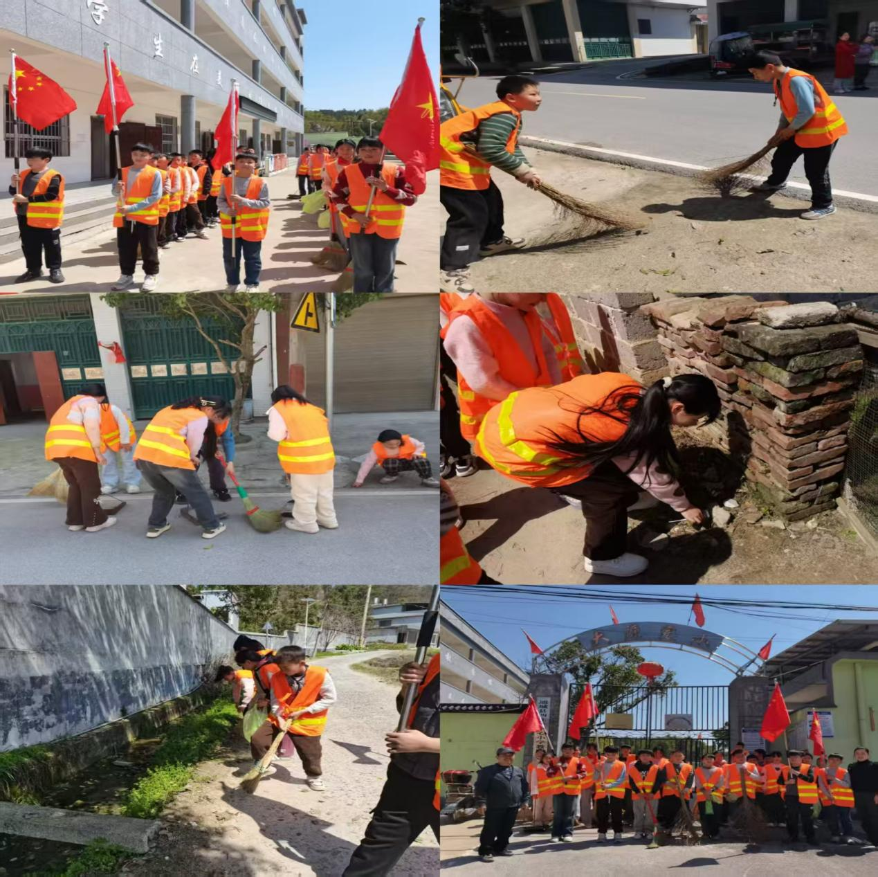 在践行雷锋精神的实践活动中,大源完小的小小志愿者积极投身家乡的环境美化工作,他们身着红色马甲上衣,手持扫帚、铲子、垃圾袋等工具,或沿村道一字排开,挥动扫帚清扫落叶、尘土与垃圾;或穿梭于狭窄巷弄,清理杂物堆;或蹲在道路旁,刷洗顽固污渍。