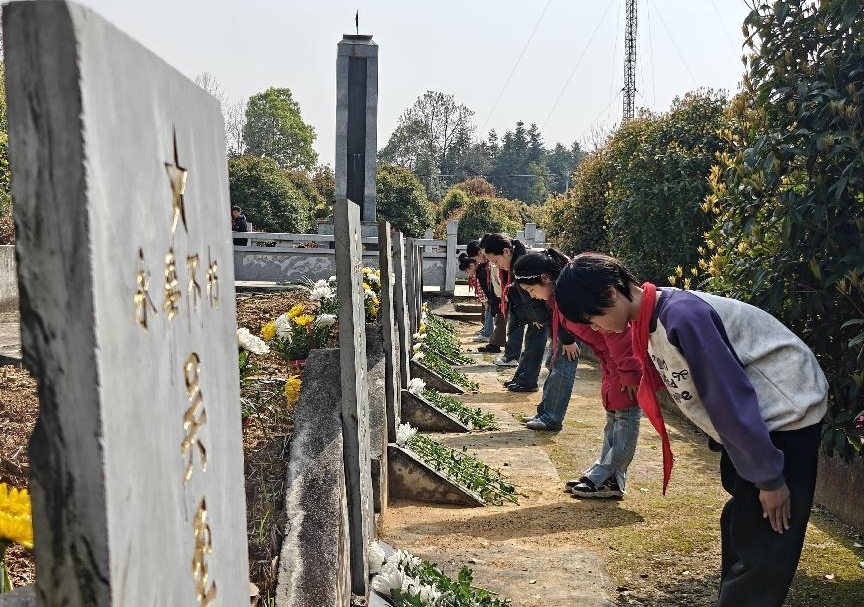 上午,达丰完小组织部分师生代表前往本地的潘凤保烈士陵园,开展祭扫活动。老师为同学们讲述了烈士们的英勇事迹。在庄严肃穆的烈士纪念碑前,师生们整齐列队,向革命烈士敬献花篮,鞠躬默哀,表达对先烈们的无限敬仰和深切缅怀。随后,师生们有序瞻仰了烈士墓,清扫墓区,擦拭墓碑,以实际行动表达对革命先烈的追思。