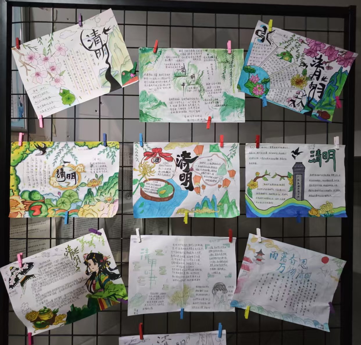 为丰富清明节文化内涵,黄袍中学还组织开展了“清明手抄报”制作活动。学生们围绕清明节主题,精心设计版面,认真绘制插图,用心撰写文字,创作出了一幅幅富有创意和感染力的手抄报。这些手抄报不仅展示了学生们对清明节传统文化的热爱和传承,也进一步营造了缅怀先烈、弘扬革命精神的浓厚氛围。