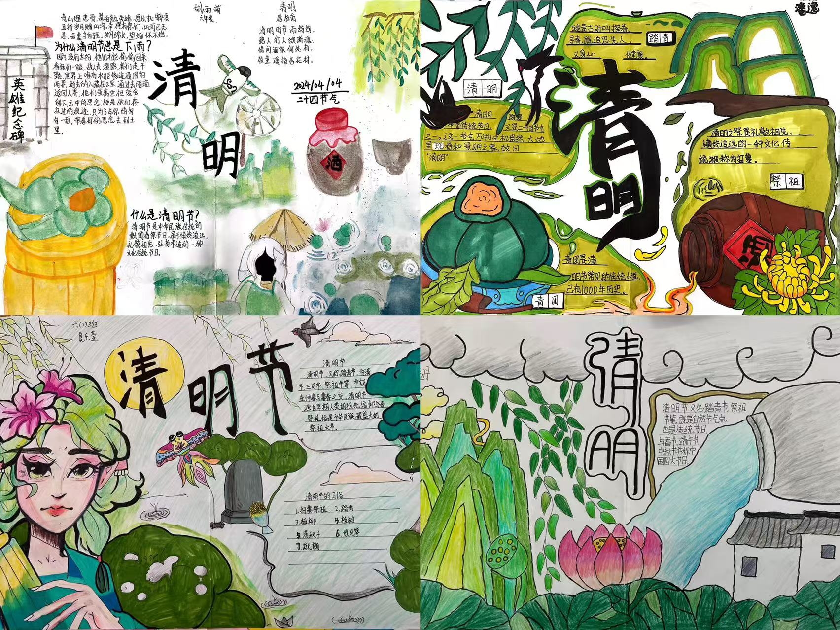 围绕“我心中的清明节”主题,学校还举办了手抄报、绘画与征文创作大赛,共收到40余件作品。有的用水墨勾勒雨纷纷的清明意象,有的用彩笔再现飞夺泸定桥的场景,四年级学生李锦在征文中写道:“纪念碑上的名字不是冰冷的石刻,而是照亮我们前进的星火。”在创作过程中,促使学生主动查阅史料,实现了美育与德育的有机融合。