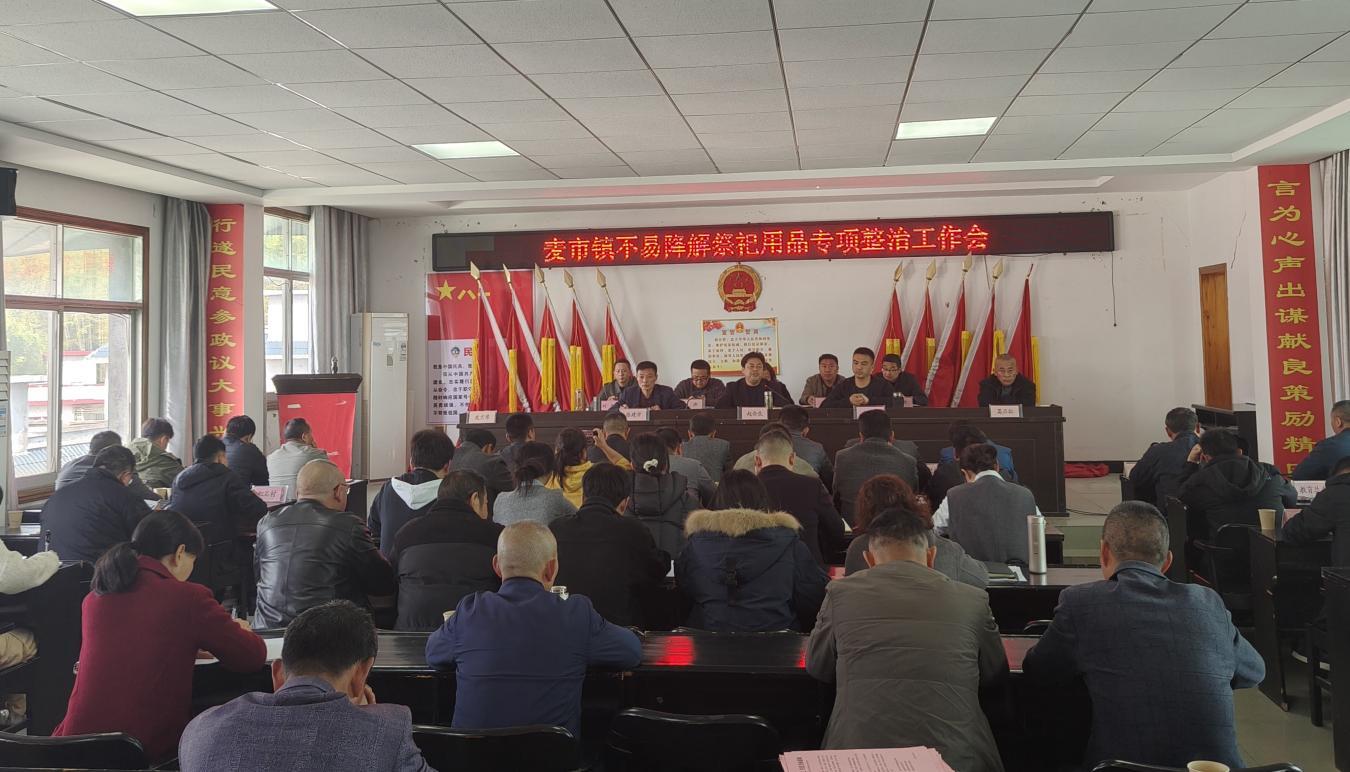 行动开展前,麦市镇组织召开不易降解祭祀用品专项整治工作会。各村(社区)、镇直相关部门负责人参会。会上,各部门对整治工作进行全面部署,明确各部门的职责分工,敲定整治行动的时间节点与工作重点。同时,深入学习相关法规政策,为整治行动的有序推进筑牢理论根基。