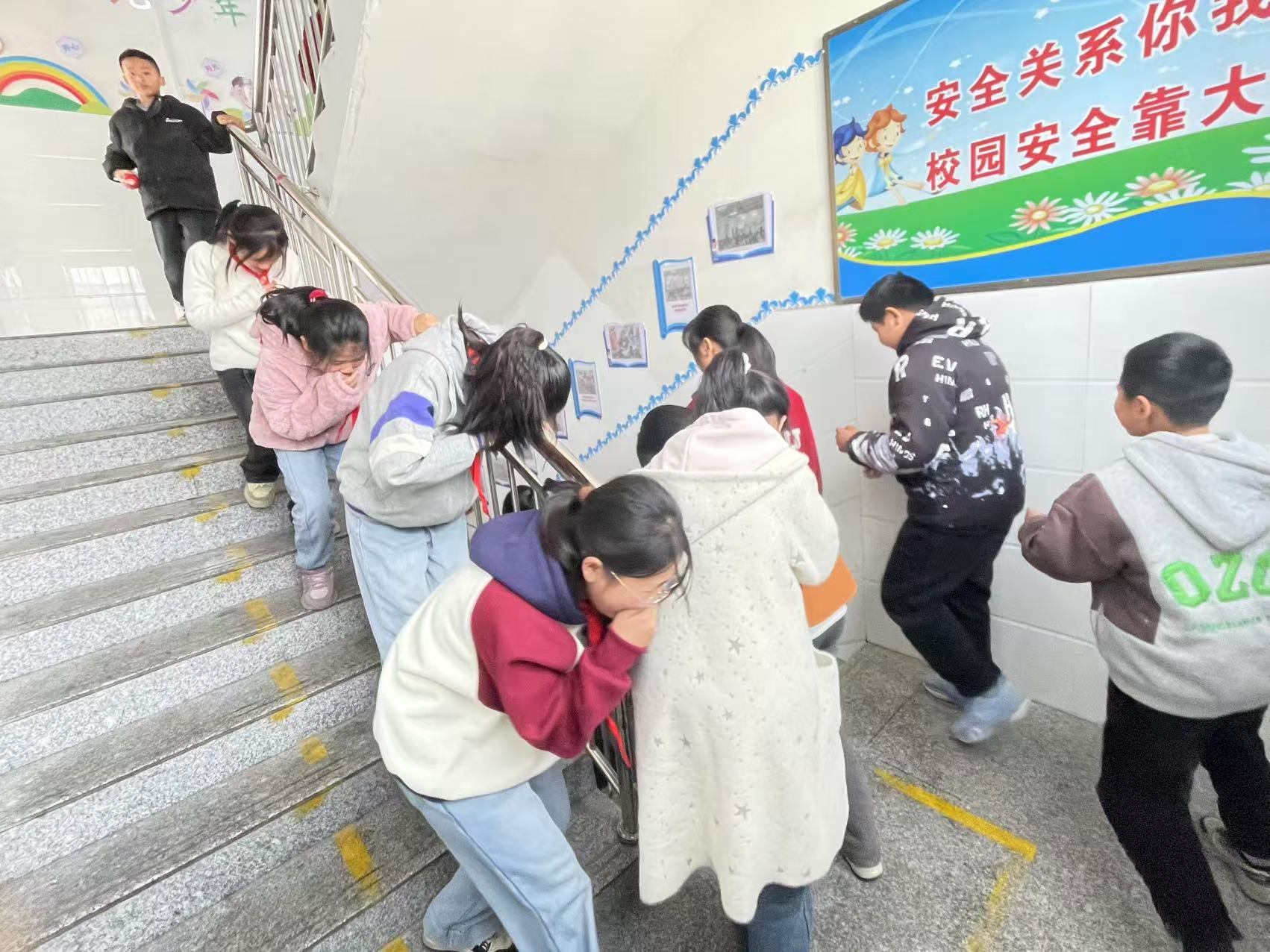 上午10点整,警报声响起时,各班主任立即到达指定岗位,引导学生用手或湿毛巾等捂住口鼻,弯腰低姿态,沿指定路径快速、有秩序地撤离教室。