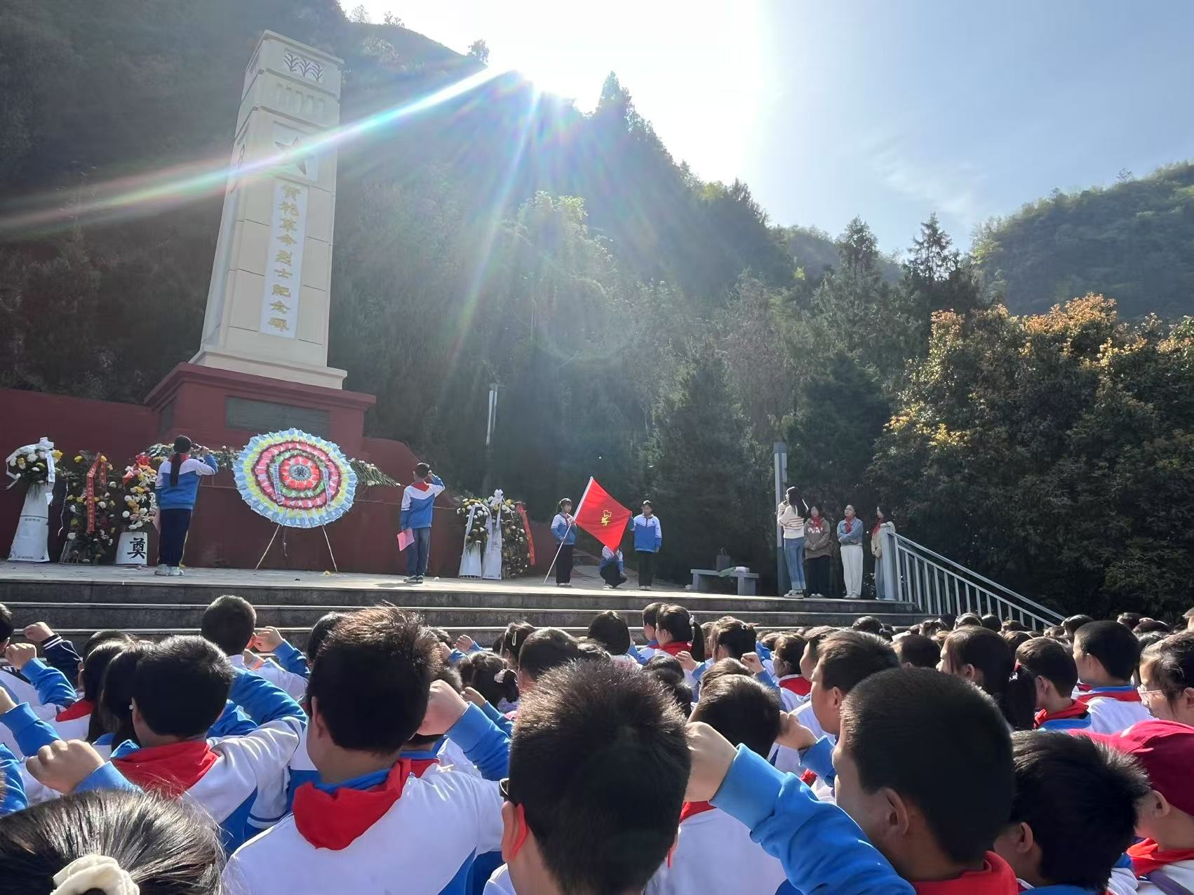 队员们在辅导员的带领下排着整齐的队伍,来到庄严的英雄烈士纪念碑前,进行了悼念仪式。伴随着《献花曲》音乐响起,队员们列队献上鲜花,向革命先烈默哀表达追思和敬仰,虔诚地向先烈行三鞠躬礼。铿锵有力的入队誓词、呼号声在纪念碑前久久回荡,队员们用嘹亮而坚定的声音表达了对先烈的敬佩之情。