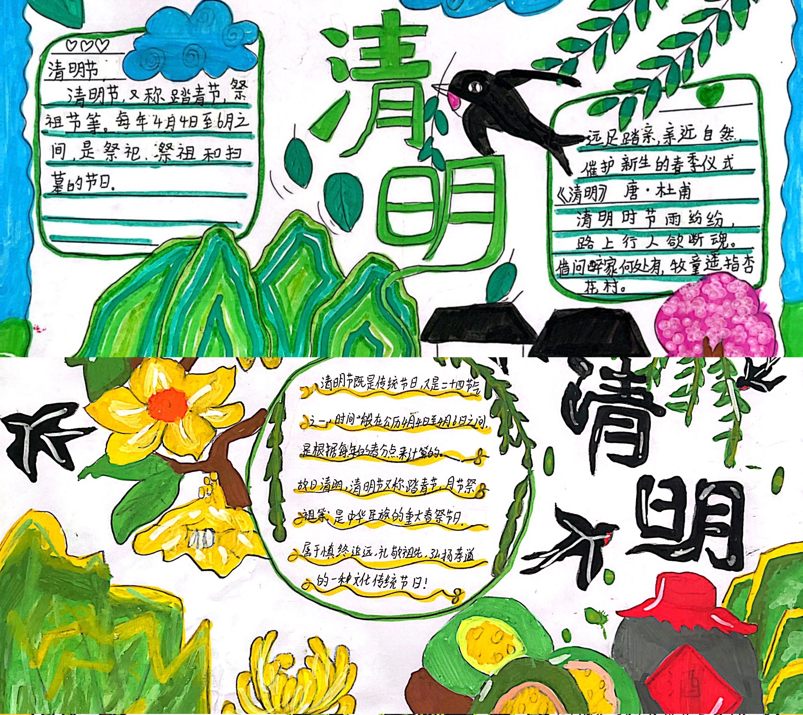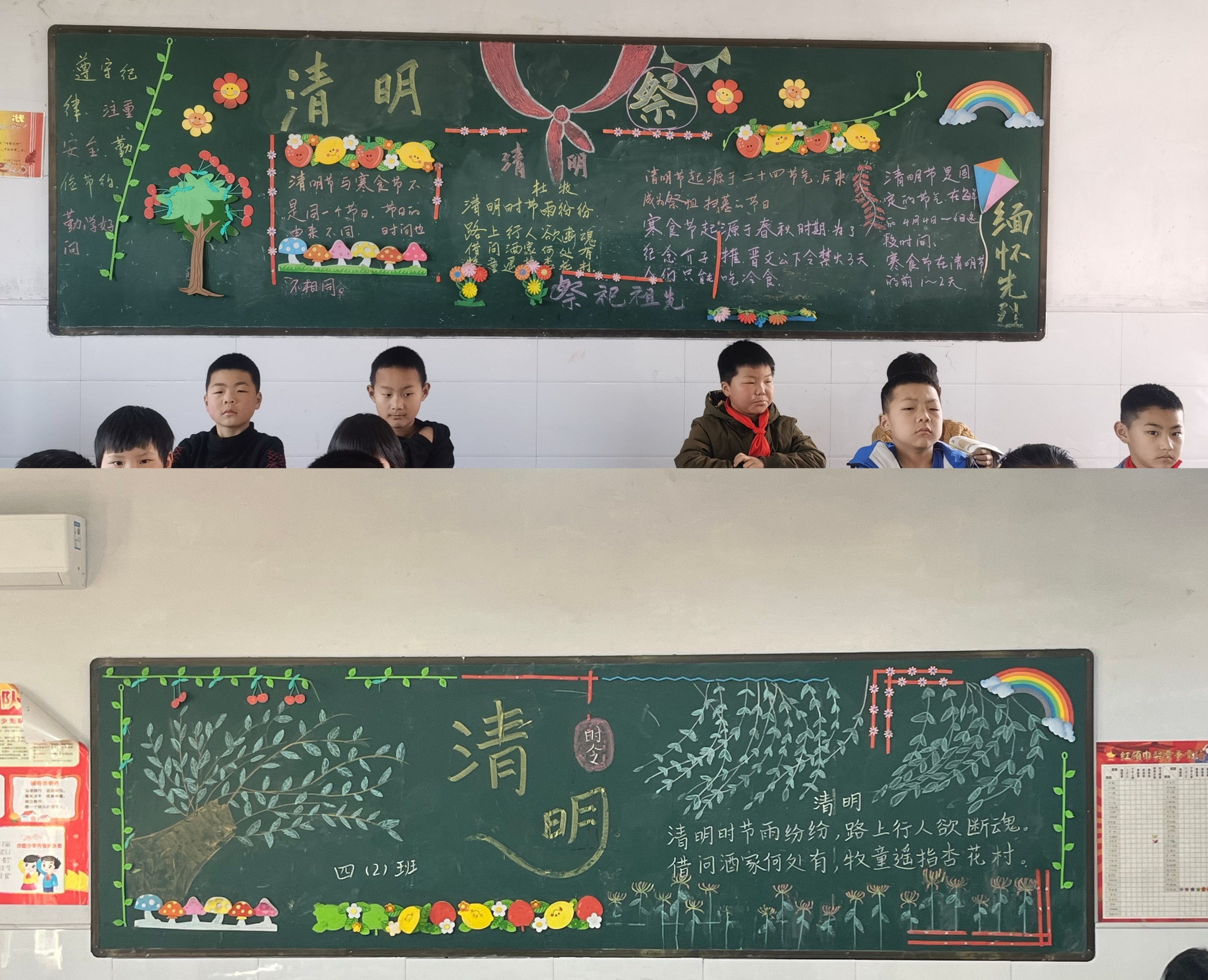 各班级积极响应学校号召,精心制作了以清明节为主题的黑板报。同学们充分发挥自己的想象力和创造力,用手中的粉笔描绘出一幅幅庄严肃穆又饱含深情的画面。黑板报内容丰富多样,既有对清明节传统习俗的介绍,也有对革命先烈英勇事迹的展现,饱含着同学们对先烈们的深切缅怀和崇高敬意。