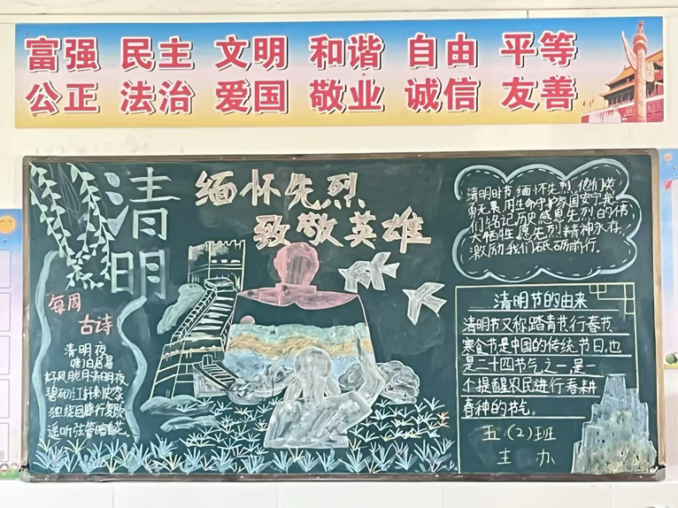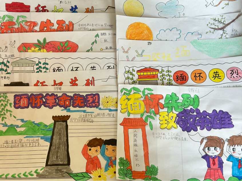 同时,各班围绕“缅怀先烈,文明祭祖”主题,制作了精美的黑板报。一幅幅图文并茂的作品,展示了革命先烈的光辉形象,营造了浓厚的缅怀氛围。同学们积极参与手抄报创作,用手中的画笔描绘出对先烈的敬仰,分享文明祭祖的感悟,这些手抄报在校园内展出,吸引了众多师生驻足欣赏。