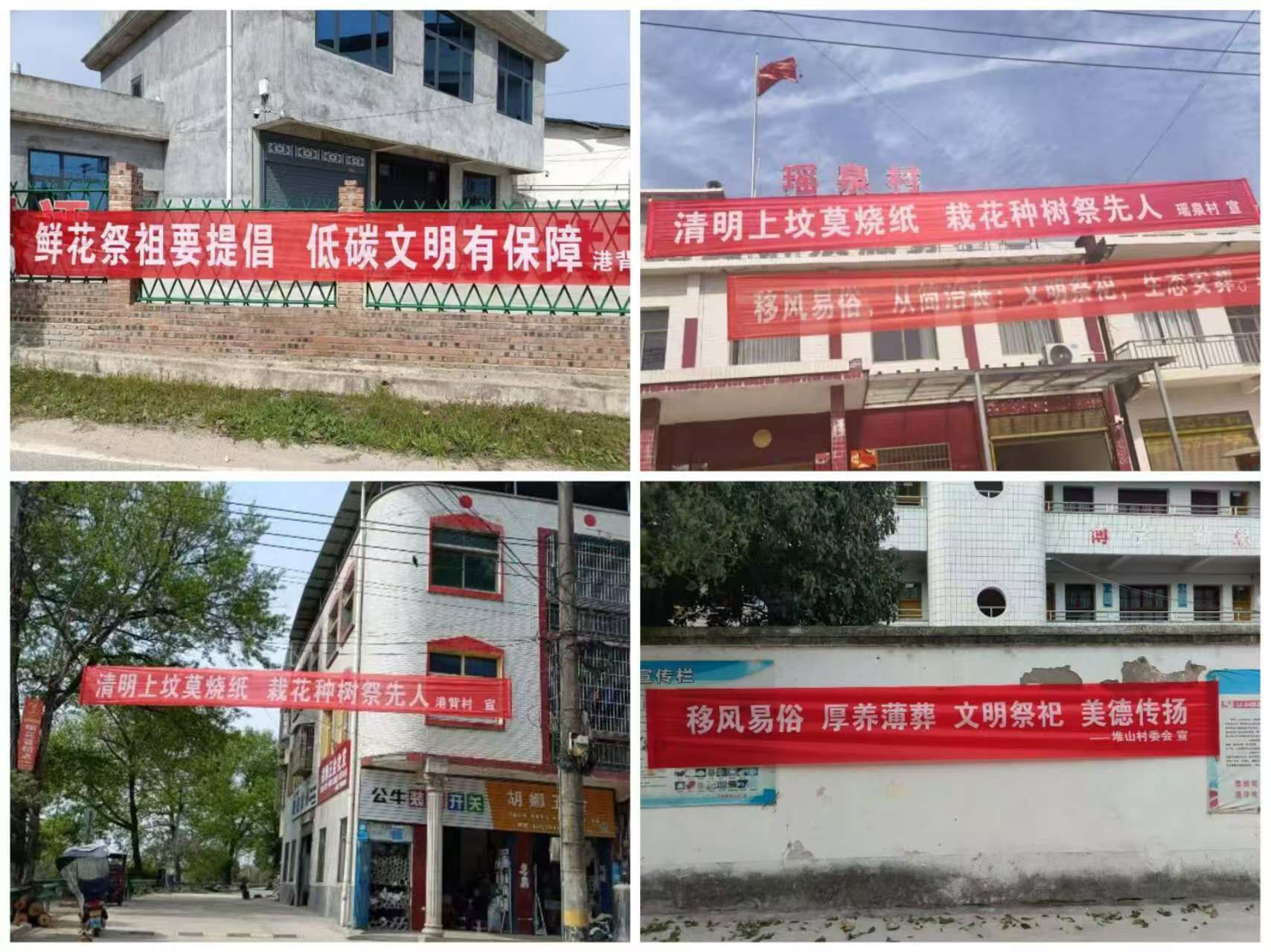 沙堆镇各村通过悬挂横幅标语,营造浓厚的文明祭祀氛围。工作人员走村入户,向村民发放“文明祭祀”宣传单,讲解传统祭祀方式存在的安全隐患,积极倡导以鲜花祭祀、植树祭祀、网上祭奠等低碳环保的方式追思先人。