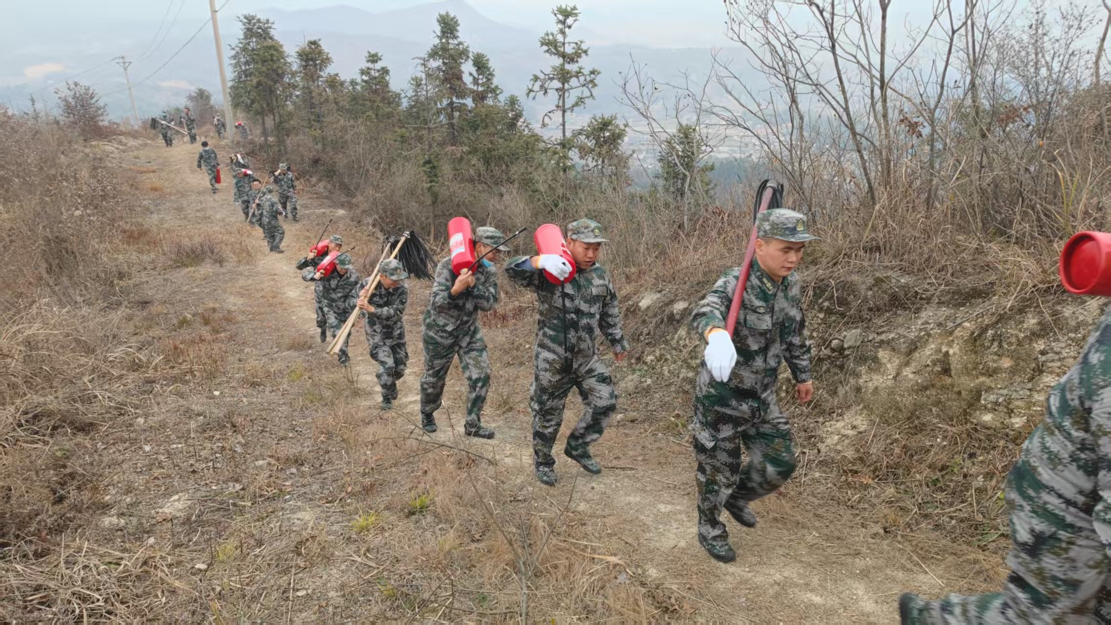 据悉,关刀镇高度重视防灭火队伍建设,召开护林防火工作部署会,对全镇防灭火工作进行周密安排。挑选镇政府年轻力壮干部18名组成防灭火突击队,开展防灭火扑救培训和应急演练,确保能够及时应对突发森林火灾。同时,镇党委对灭火器、铁锹、砍刀等灭火器材进行全面清点,为每位灭火突击队员配发防火服装,做好随时应战的准备;采取“线上+线下”相结合的方式开展全方位防火宣传。线上通过微视频等形式,通过“正面宣传引导+反面警示教育”相结合的方式强化宣传效果。线下全面推行入户行动,党员干部下沉到村组一线,逐户签订森林防火承诺书8000余份,出动宣传车走村入户,让禁火令和防火法治意识家喻户晓;严格落实“一日巡山八小时”管理制度,特殊时期巡查十二小时,乡村两级林长和护林员佩戴“红袖章”,对林地、山头、路口进行无死角、全覆盖式巡逻巡查。在防火重点时期,各村设卡值守,严禁火源上山,通过常态化巡逻确保及时发现火情、及时预警。