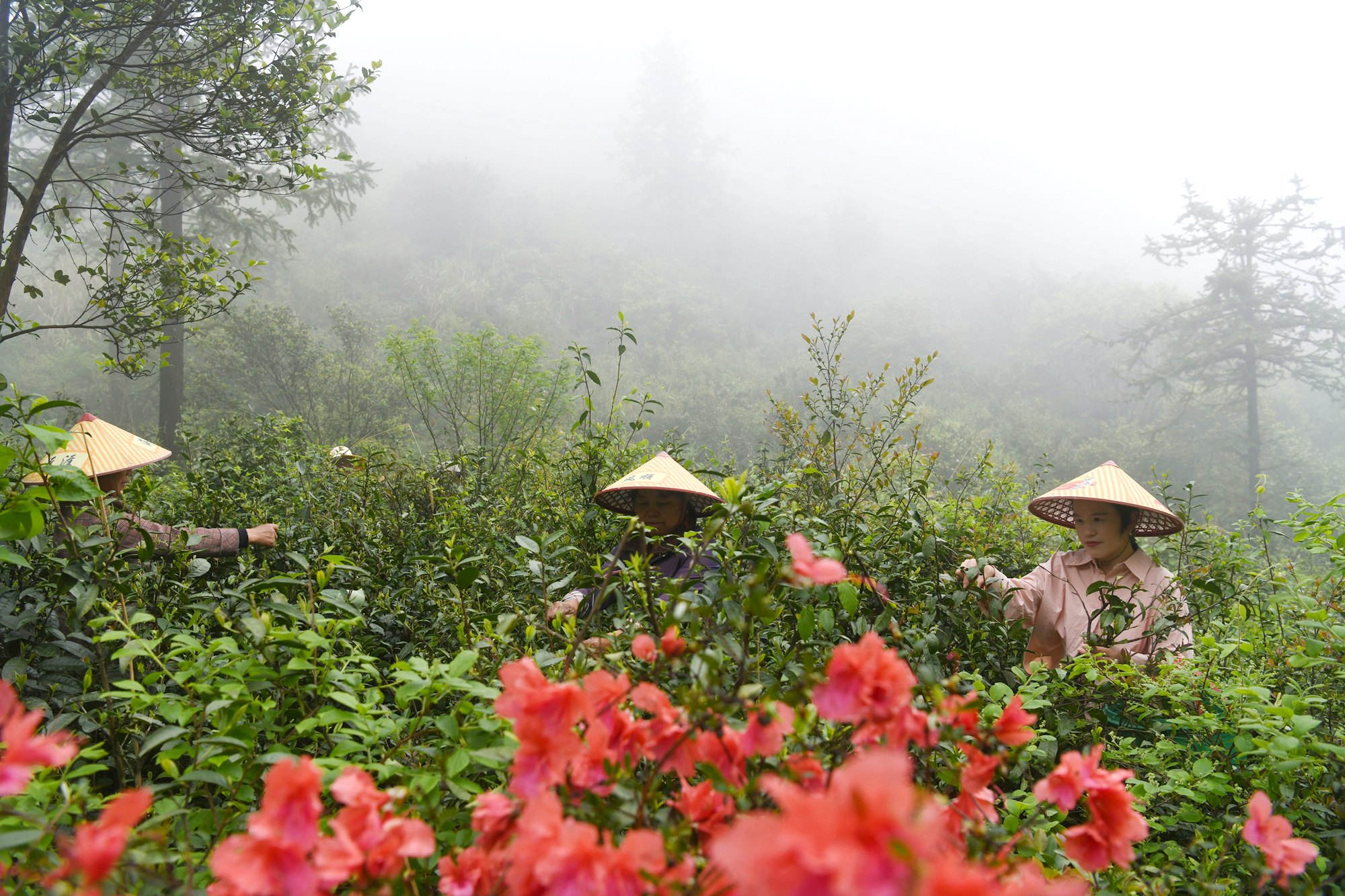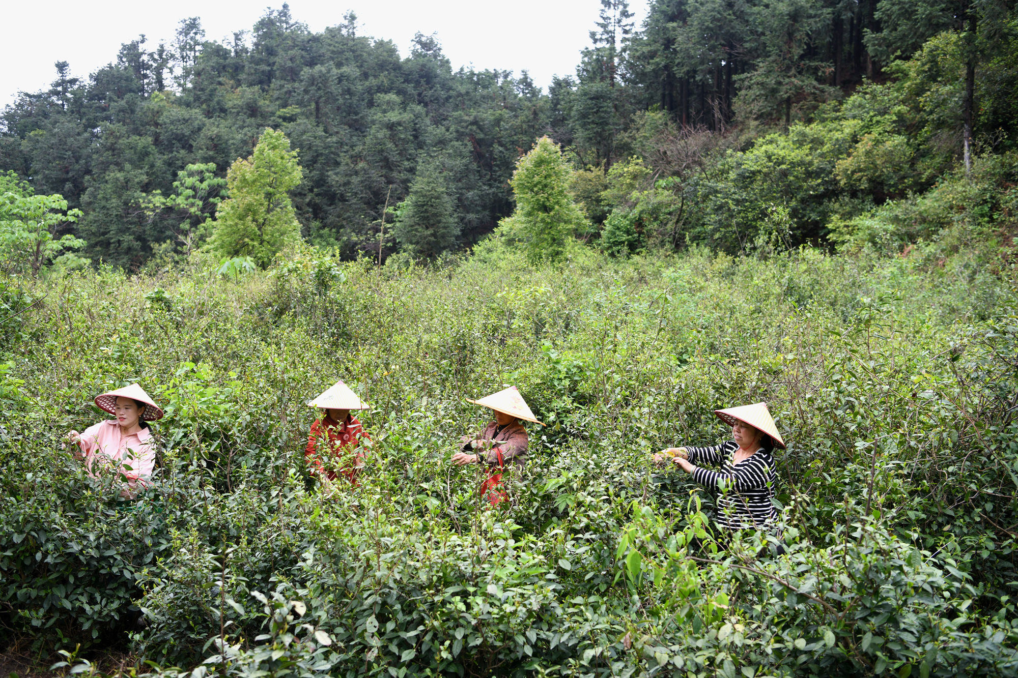 联农带农激活“绿叶经济”。昨日,高峰村村民吴二兵算起“生态账”:“以前采野茶自家喝,现在合作社统一收购,每天能挣200多元!”