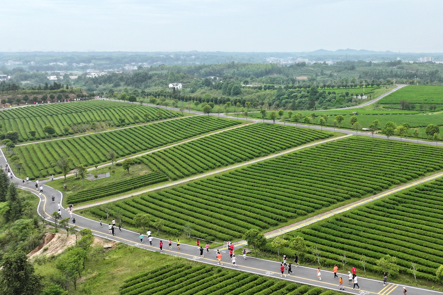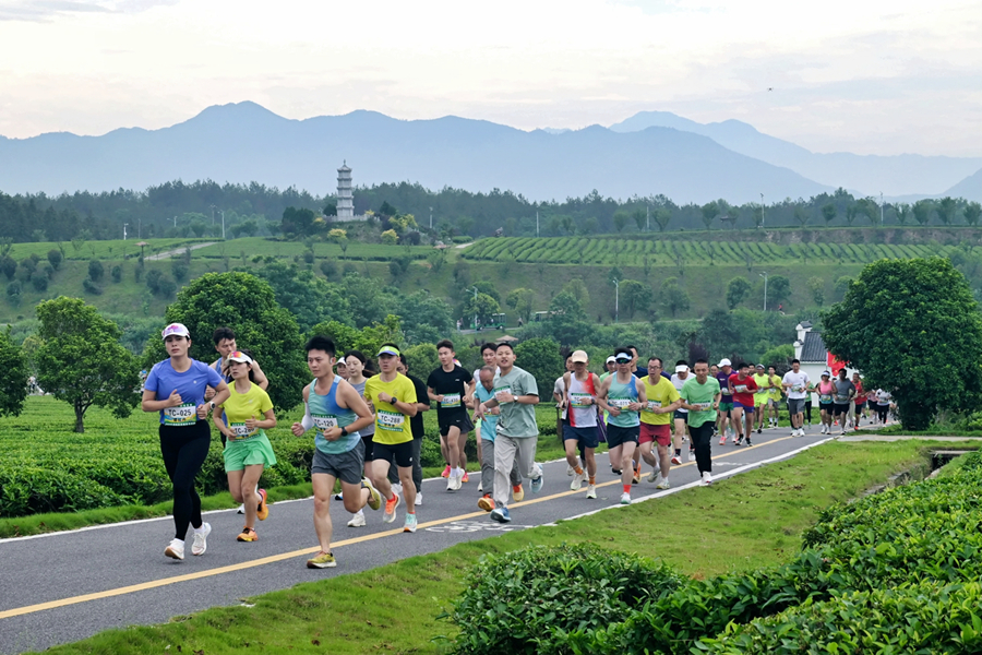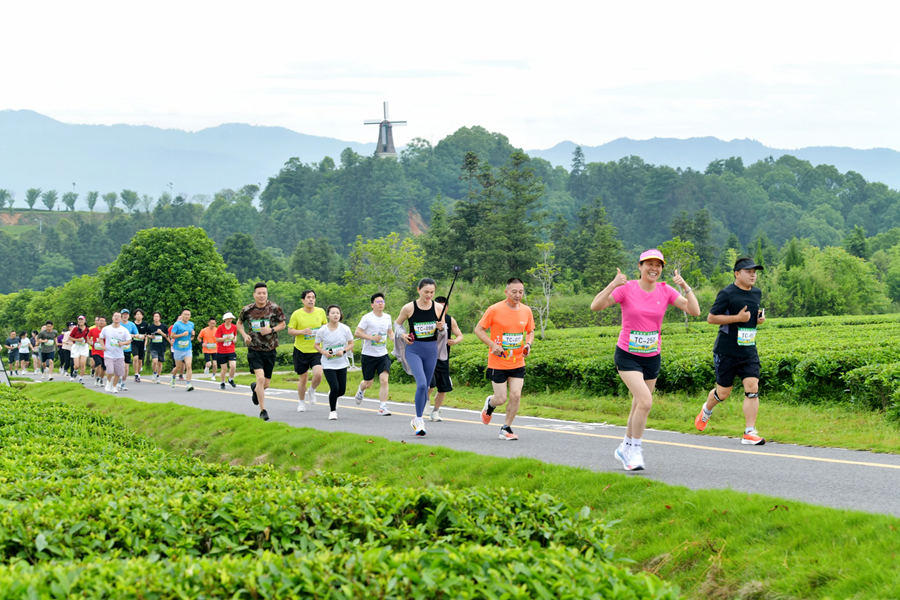 上午8时30分,随着发令枪响,参赛者从九井峰乡村产业振兴示范园主会场出发,沿4.2公里环形赛道驰骋。赛道贯穿生态茶园步道、自行车专用道等特色景观带,奔跑者身影与起伏的茶垄、苍翠的青山相映成趣,勾勒出“人在画中跑”的生动场景。
