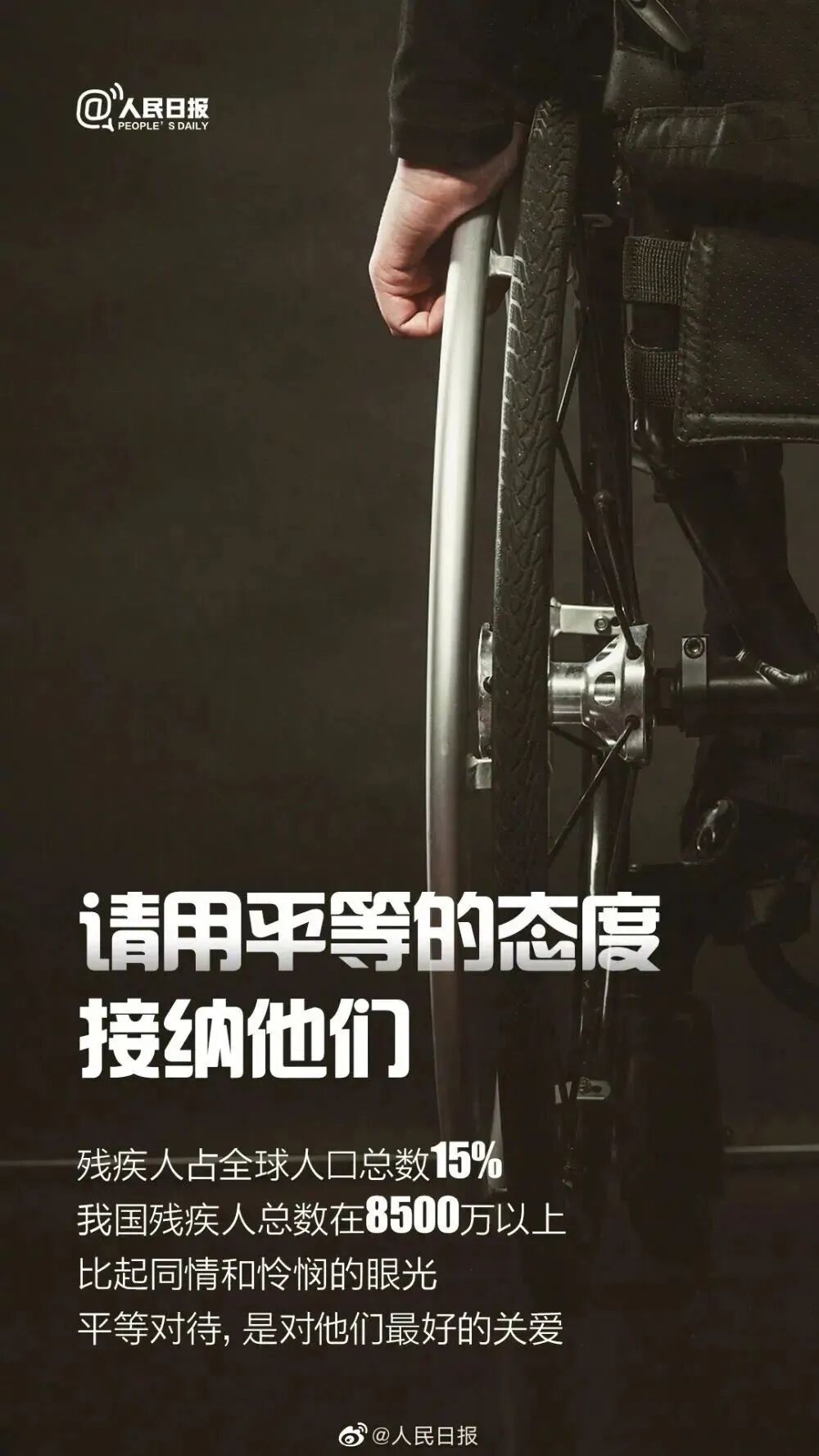 残疾人是最大的少数群体,但是,残障人士却很少出现在大众视野中,残障人士生活中的诸多不便,很多时候不是因为残障本身,而是目前的无障碍设施不完善,以及人们的偏见与不理解,我们呼吁,关爱残疾人,让每个生命得到同样的尊重。