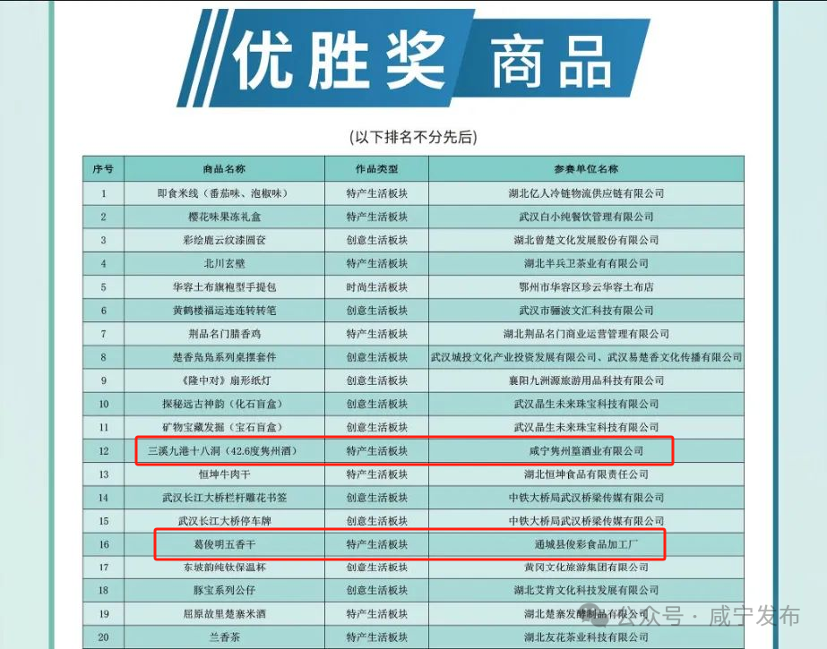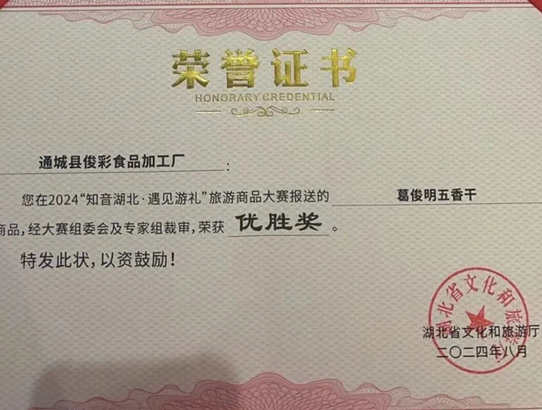 8月30日,从2024“知音湖北 遇见游礼”旅游商品大赛成果发布仪式上传来好消息,咸宁在该项赛事中揽回优秀组织奖、银奖、铜奖等五项大奖,其中通城县葛俊明麦市干子、隽州篁酒获得全省旅游商品大赛优胜奖,彰显了通城旅游商品的独特魅力和市场潜力。