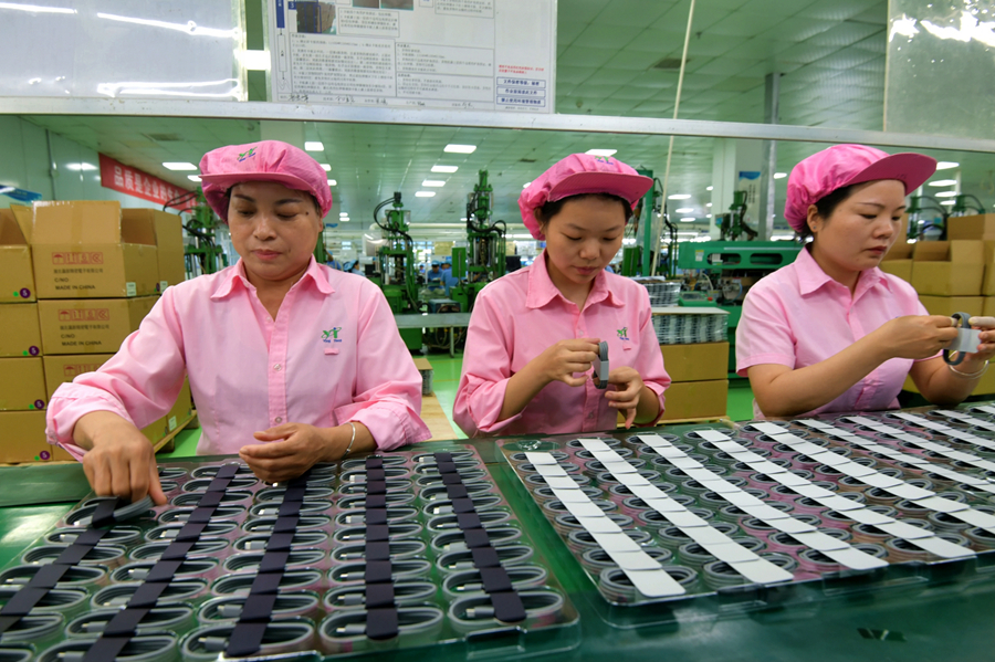 “我们每年加大研发投入,专利技术转化率高。”瀛新精密电子负责人介绍,企业专注耳机线、智能手环等产品研发,其百多项耳机专利助力产品远销海外。