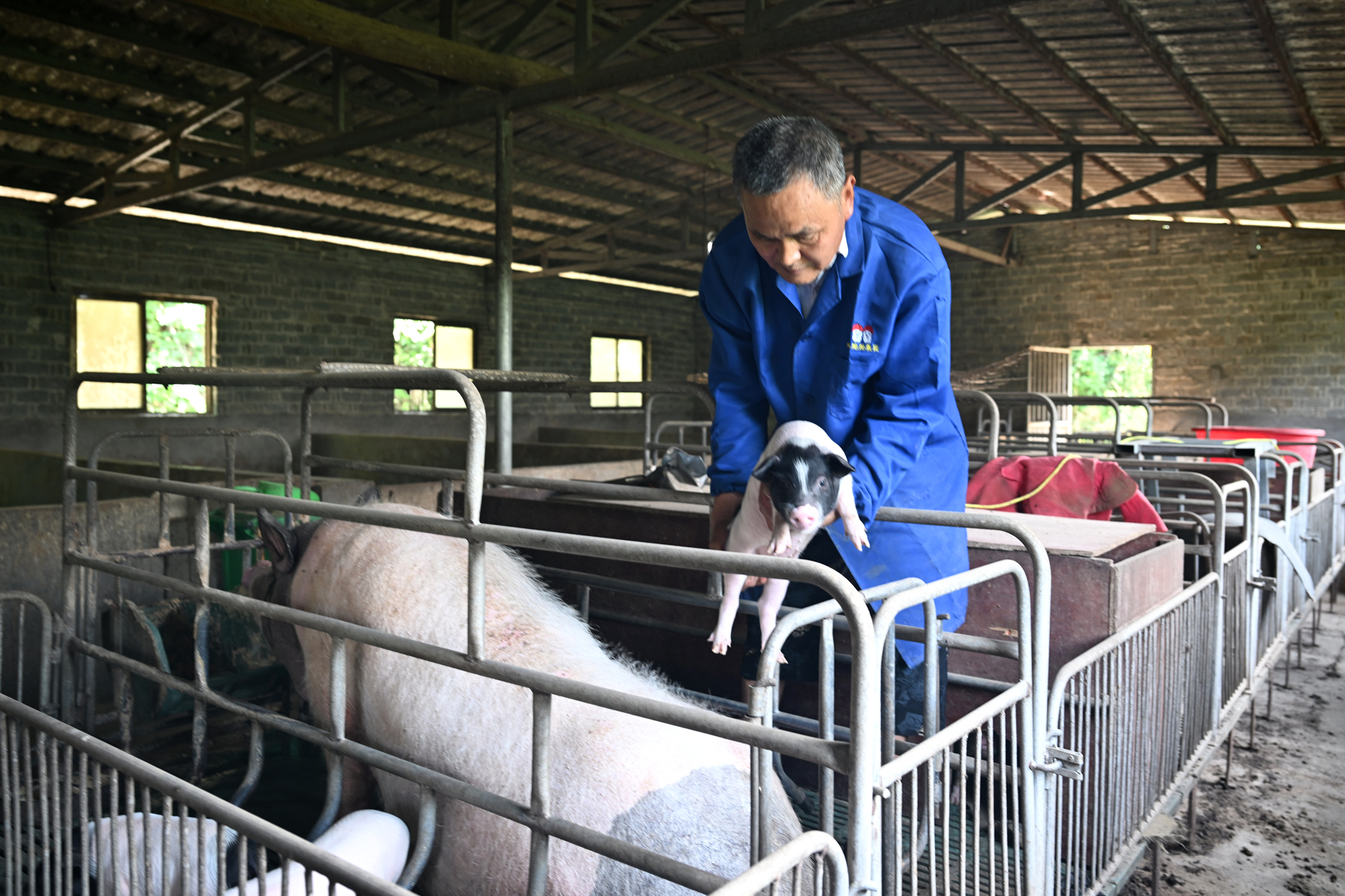 为保证肉质,他拒绝速成饲料,猪仔吃五谷杂粮慢养一年才出栏。2019年非洲猪瘟席卷而来,20多万元投入打了水漂,他蹲在空荡荡的猪圈哭红了眼。2021年,他东拼西凑咬牙再次借钱买回4头“两头乌”母猪,像照顾孩子一样重新开始。