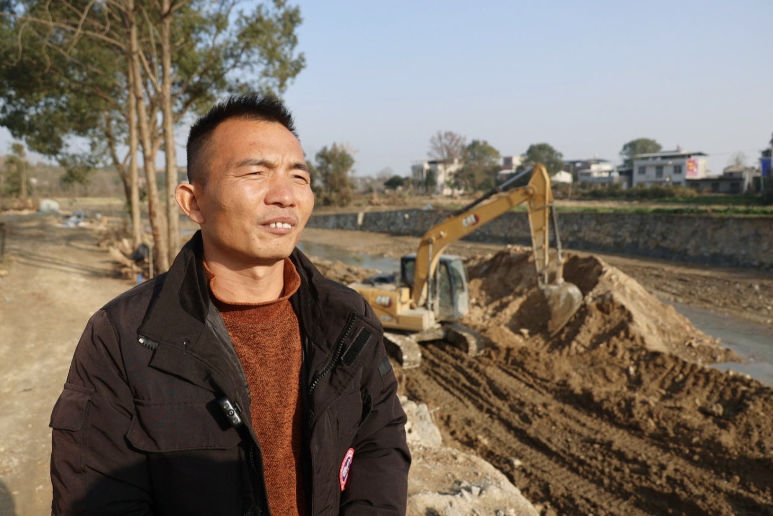 易畈港小流域综合治理项目施工负责人 徐财:该项目自2025年6月份建设以来,目前已完成河道治理95%的建设量,正在进行土方回填工程,预计元旦前全部完工。