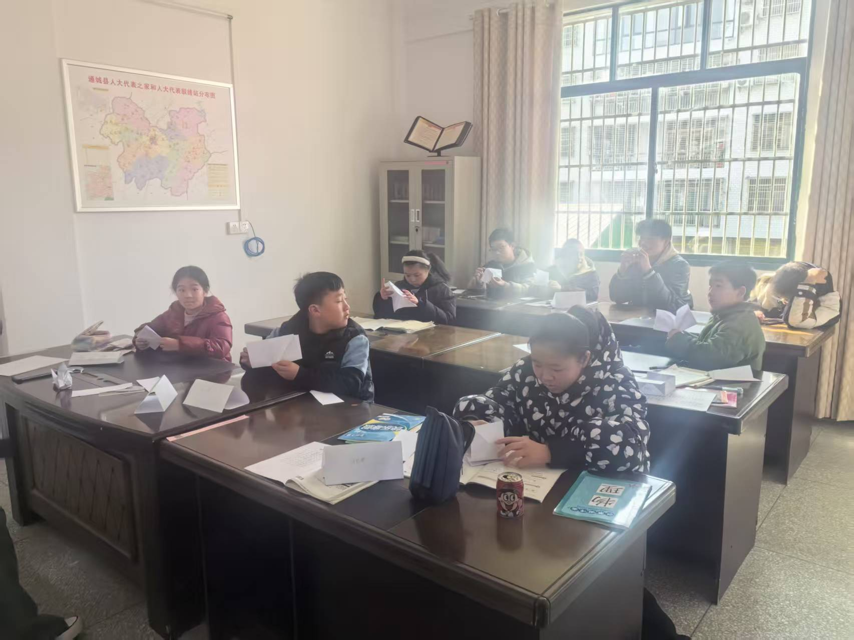 本次爱心托班分为一二三年级和四五六年级两个班,课程涵盖作业辅导、安全教育、垃圾分类、预防诈骗、折纸、绘画、普法和党的二十届四中全会精神宣讲等。