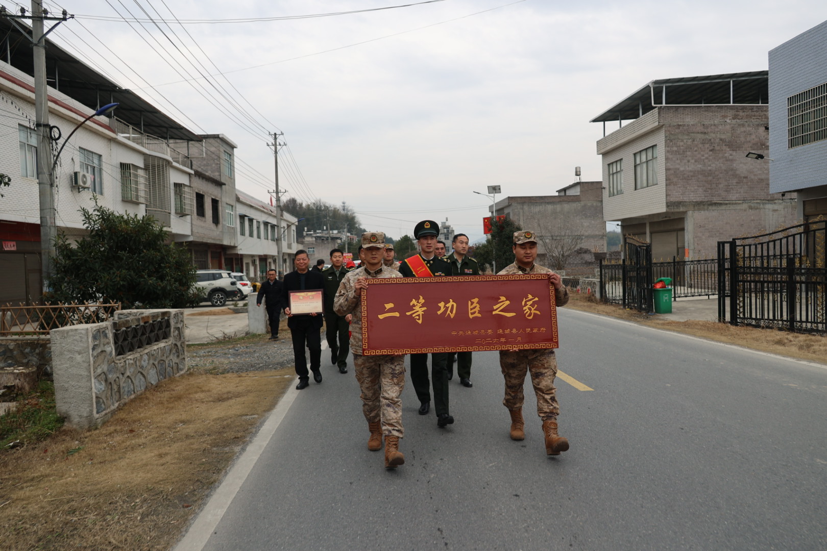 随后,送喜报队伍一行先后来到石南镇赛公村二等功臣吴忠望、塘湖镇龙印村二等功臣瞿洵家中。村里锣鼓喧天,横幅高挂,邻里乡亲纷纷前来道贺,现场洋溢着喜庆与荣耀的气氛。县领导将立功喜报、“二等功臣之家”牌匾及慰问金、慰问品送到军属手中,并为他们戴上光荣绶带,与功臣家属亲切围坐,详细询问他们的身体状况和生活情况,感谢他们为国防事业培养出优秀人才,为家乡赢得了崇高荣誉。军属们脸上洋溢着自豪与感动,纷纷表示将继续支持亲人在部队安心服役、再立新功。