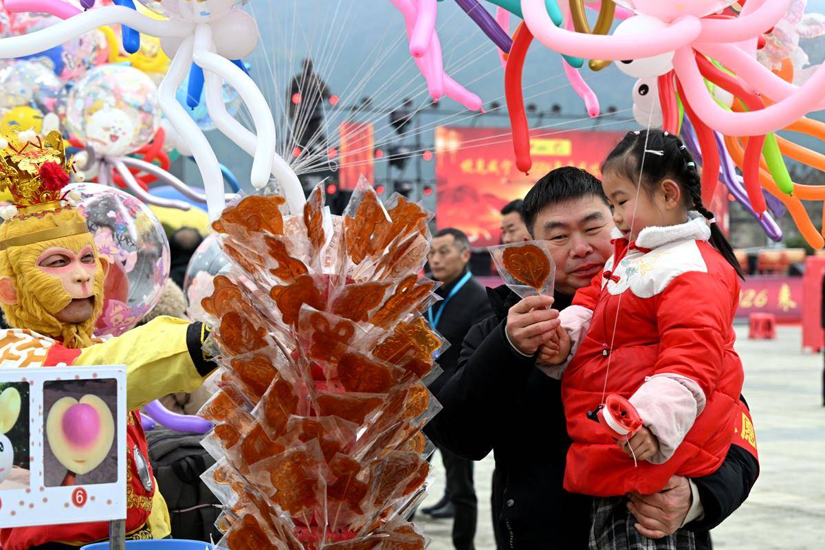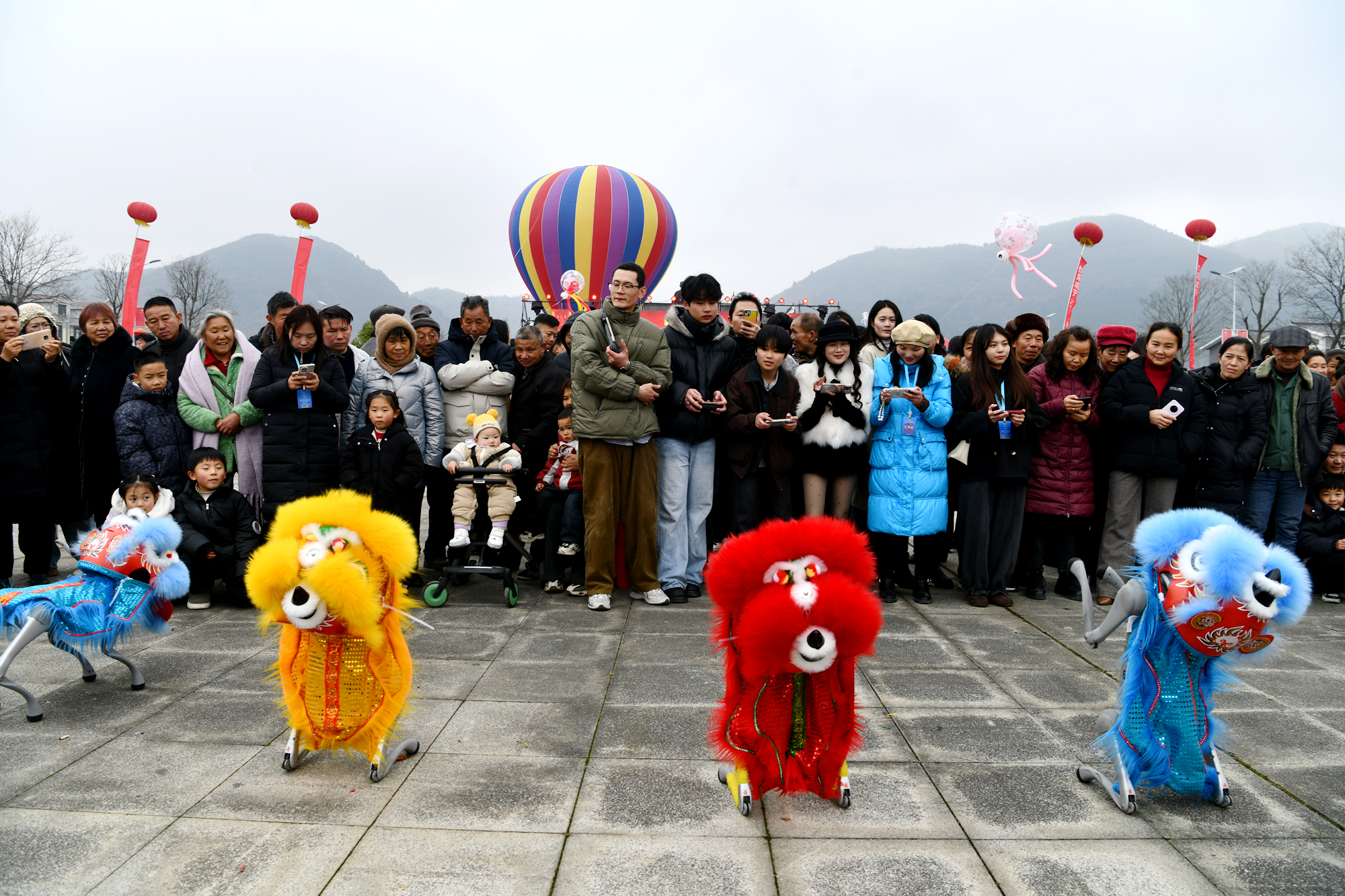 上午9时,塘湖镇荻田村广场十分热闹,各路游客纷至沓来,特色农产品、小吃、展演、人气将现场烘托得喜气洋洋、年味十足。