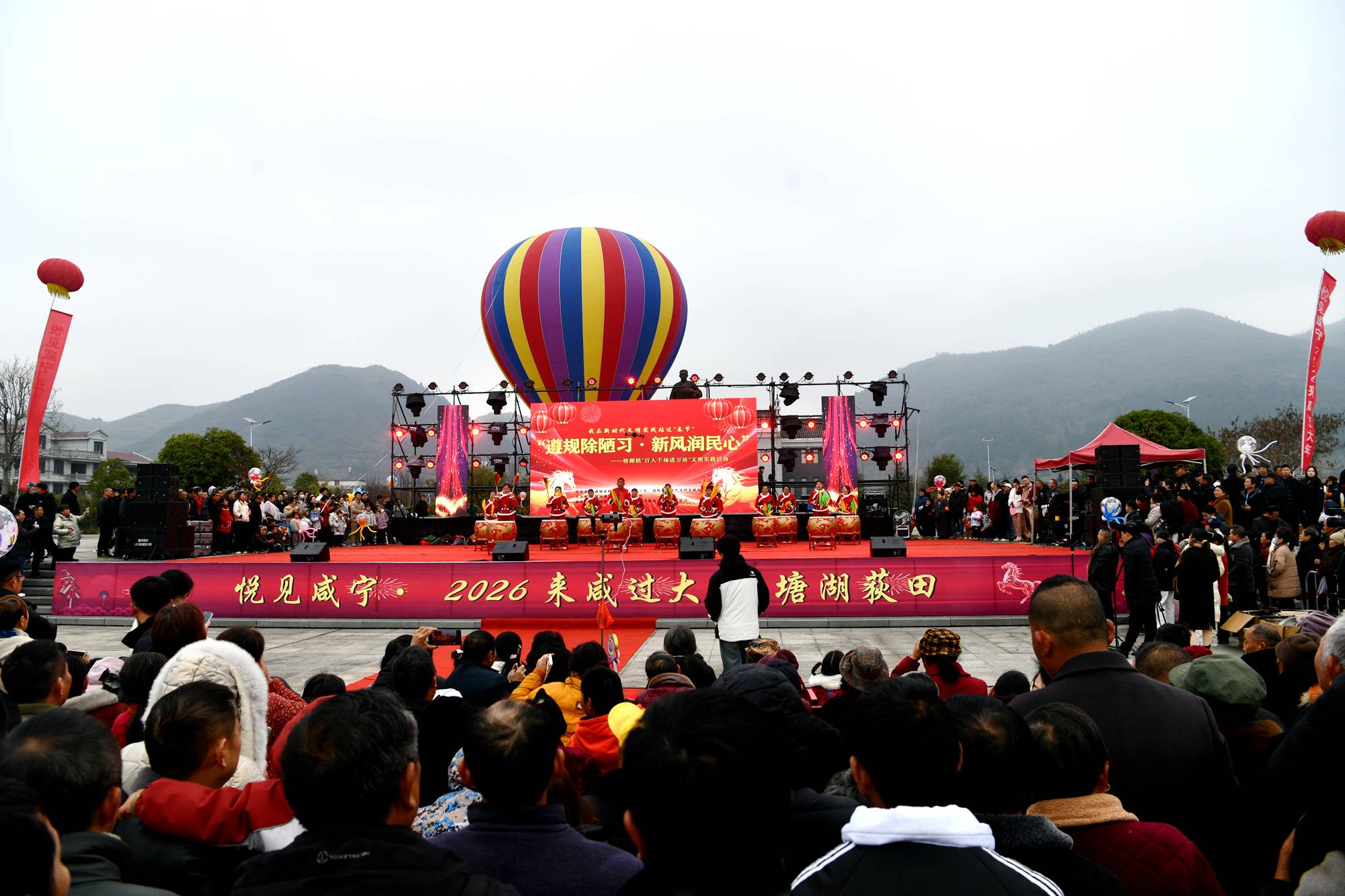 今日,以“悦见咸宁·2026年来咸过大年”为主题的红色塘湖·新风贺春赶集活动,在湖北省通城县塘湖镇荻田村广场盛大启幕。
