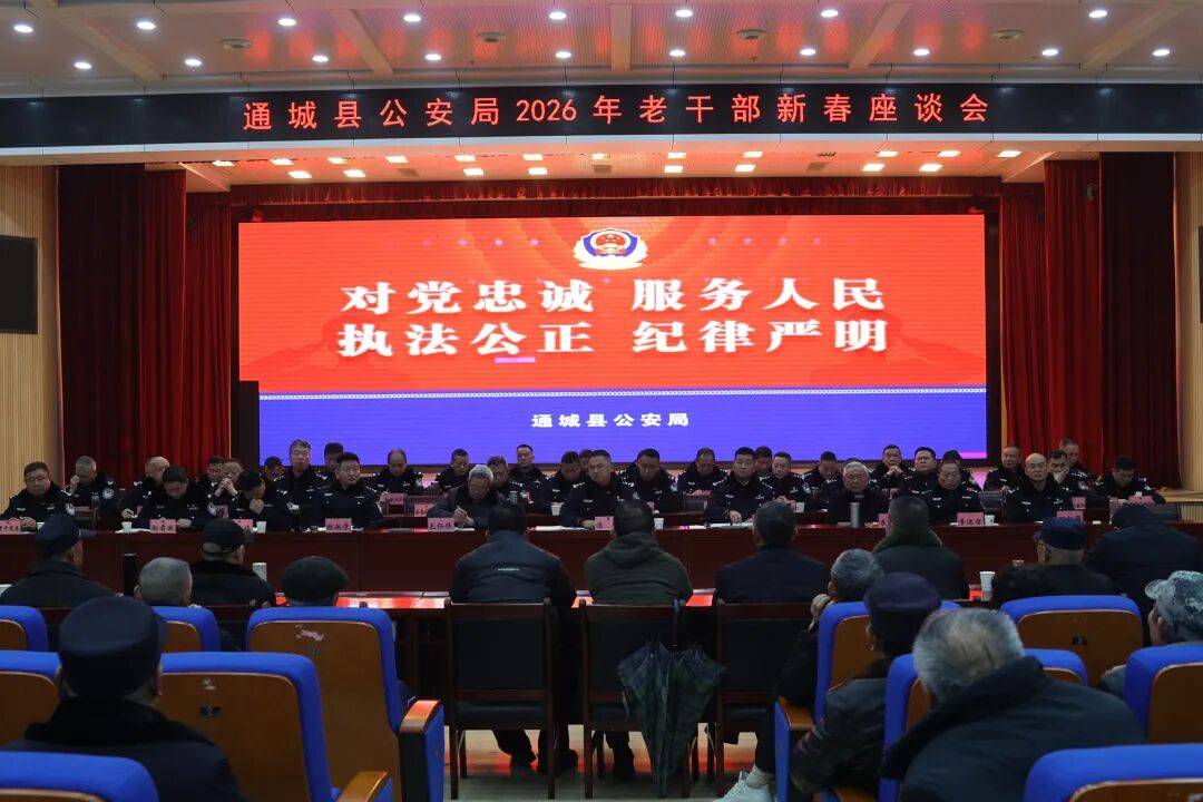 【通讯员 李佳玫 卢佛平】新春将至,暖意融融。为传承公安优良传统,凝聚老干部智慧力量,2月6日上午,通城县公安局召开2026年老干部新春座谈会。局领导班子成员、局属各单位主要负责人与全体退休老干部欢聚一堂,叙旧话新、共迎佳节、共话公安发展新篇章。