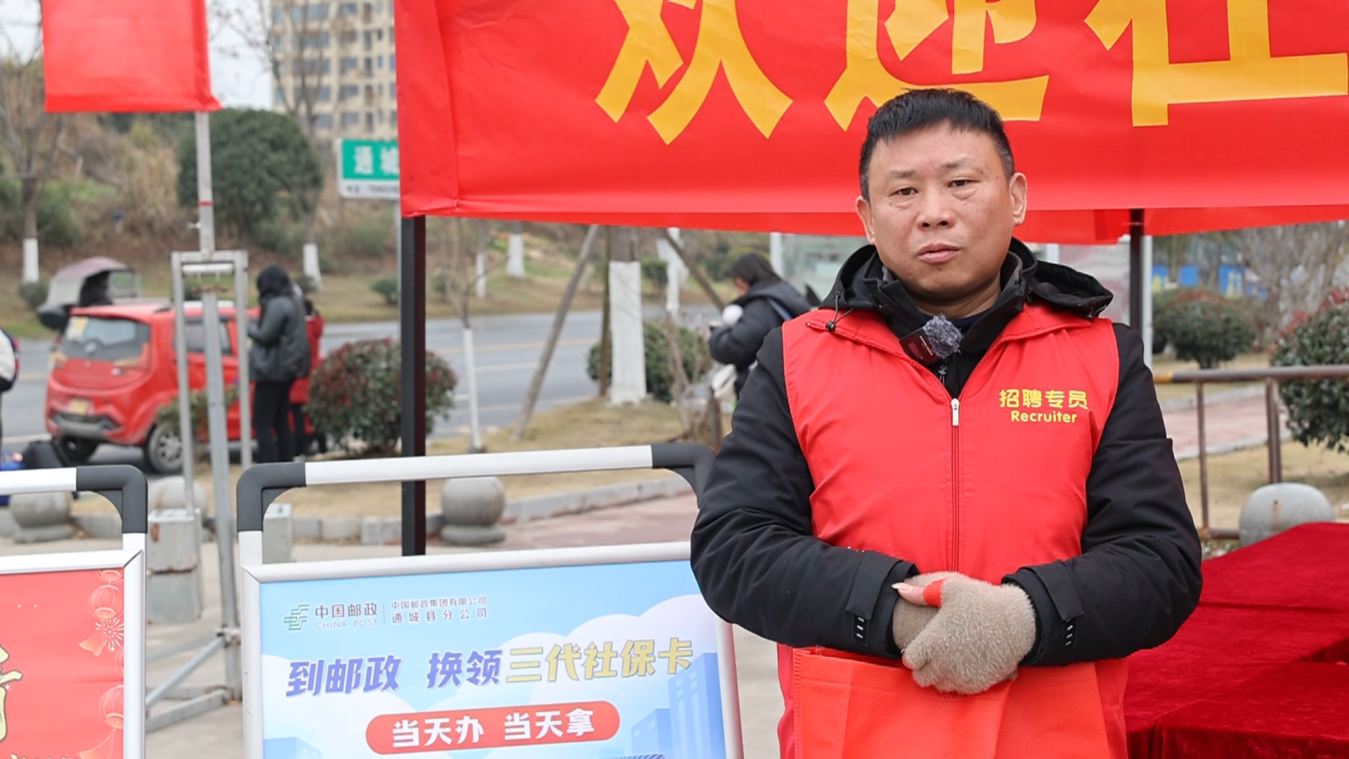 县邮政公司志愿者 胡江洪:我们为返乡务工人员准备了礼包,里面有春联、挂历和福字红包,还有人社和反电诈政策宣传页,希望返乡群众能安安心心、平平安安过大年,祝大家新年快乐!