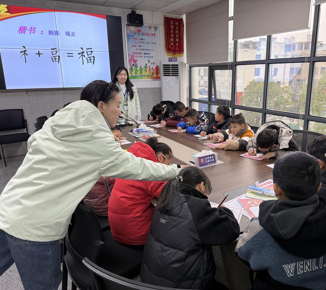【通讯员 杜琰烽】为丰富孩子们的假期生活,让青少年儿童在沉浸式体验中感受中华优秀传统文化的魅力,2月9日,隽水镇雁塔社区“爱心托管班”开展了一场别开生面的“福字迎新春,英语话年味”主题活动。活动由少先队辅导员牵头,将传统书法教学与双语表达相结合,为孩子们打造了一堂特别的新春课堂。