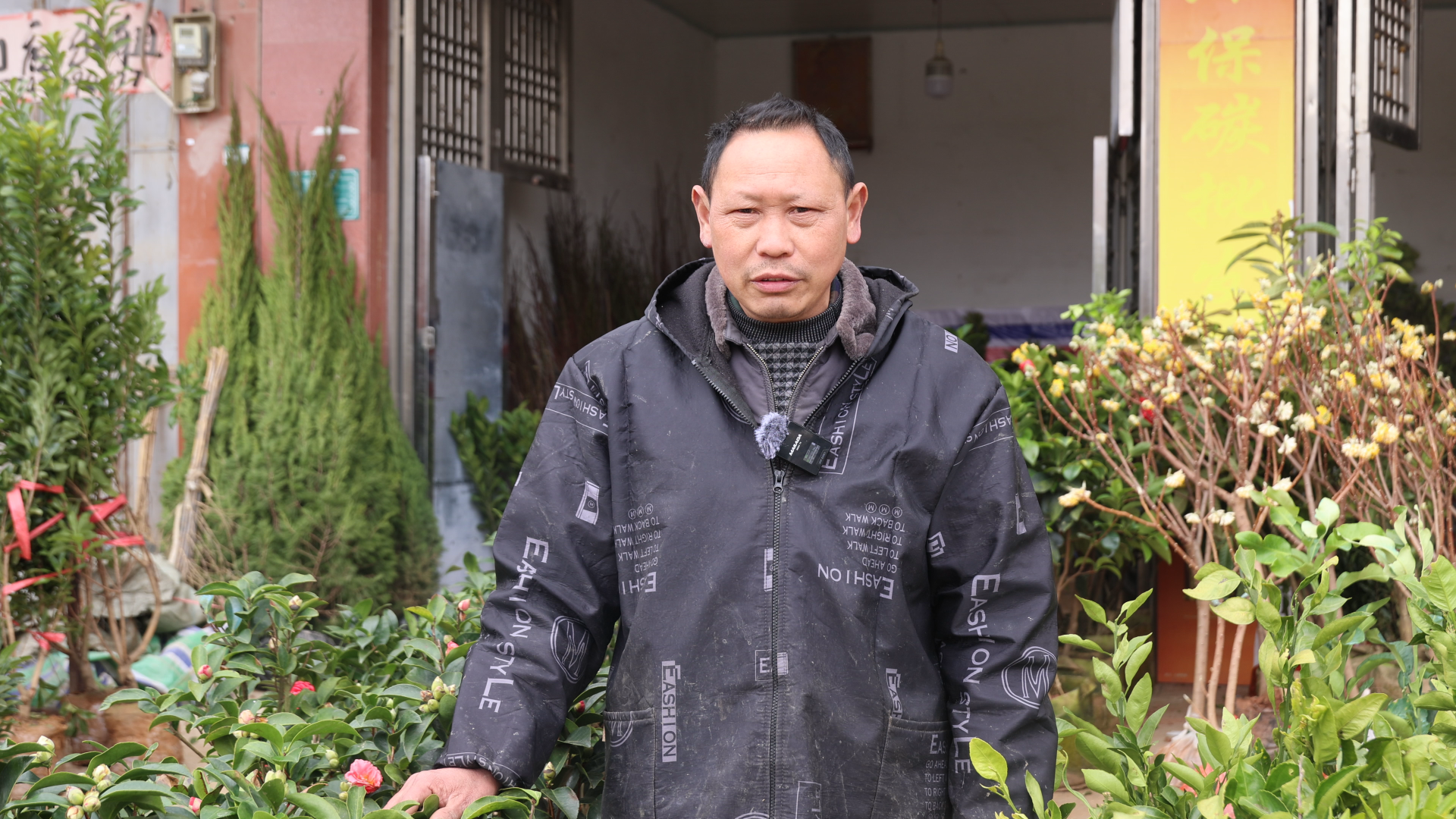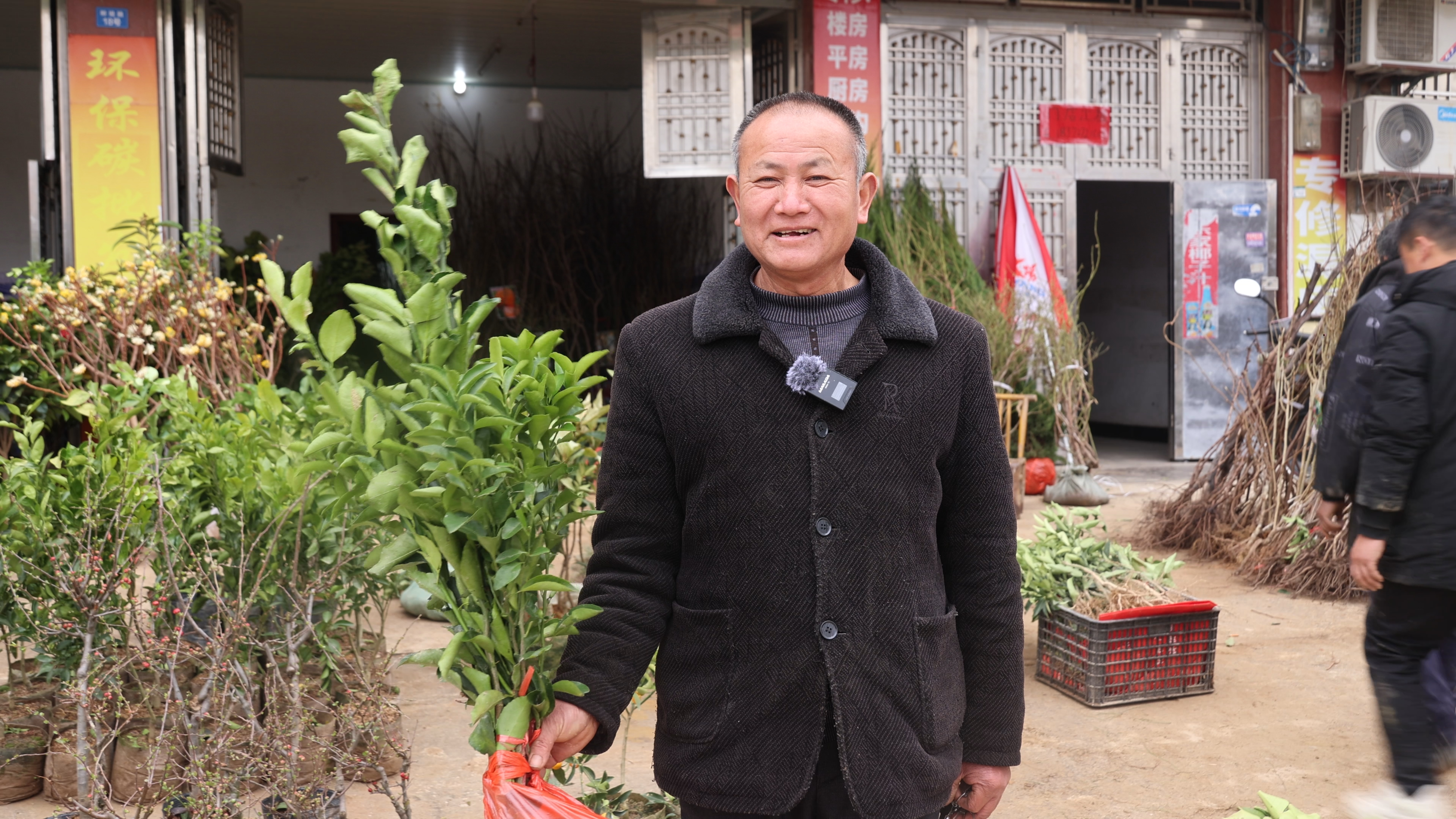 商户 吴忠新:我家的树苗品种繁多,各式各样,包括金桔、桃树苗、李树苗等。